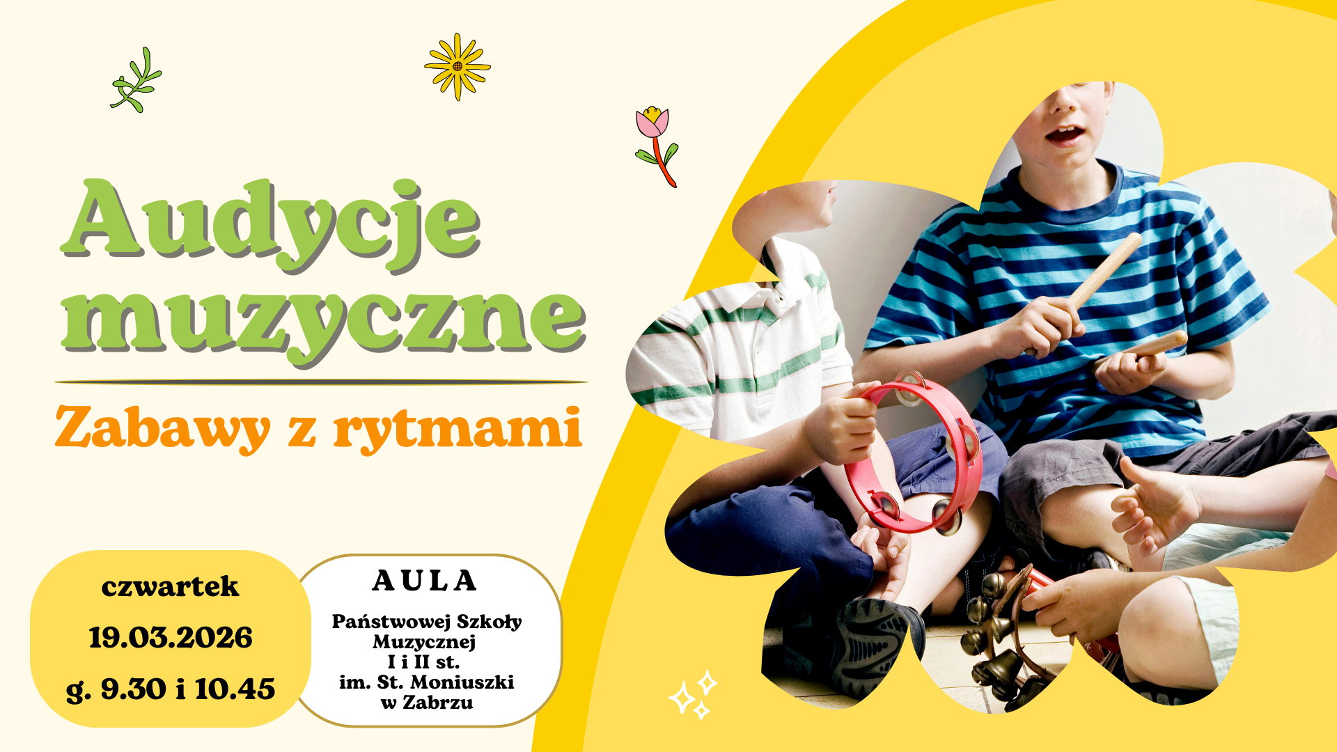 W czwartek, 19 marca 2026 roku o godz. 9.30 i 10.45 odbędą się kolejne audycje muzyczne pod tytułem Zabawy z rytmami. Serdecznie zapraszamy grupy szkolno-przedszkolne, które zarezerwowały wstęp.