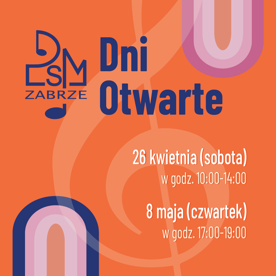 Zapraszamy na Dni Otwarte w sobotę 26.04. (godz. 10.00 -14.00) oraz w czwartek 08.05. (godz. 17.00 -19.00), podczas których można spróbować gry na instrumentach, sprawdzić swój głos i słuch muzyczny, posłuchać, jak grają nasi uczniowie i świetnie się bawić.