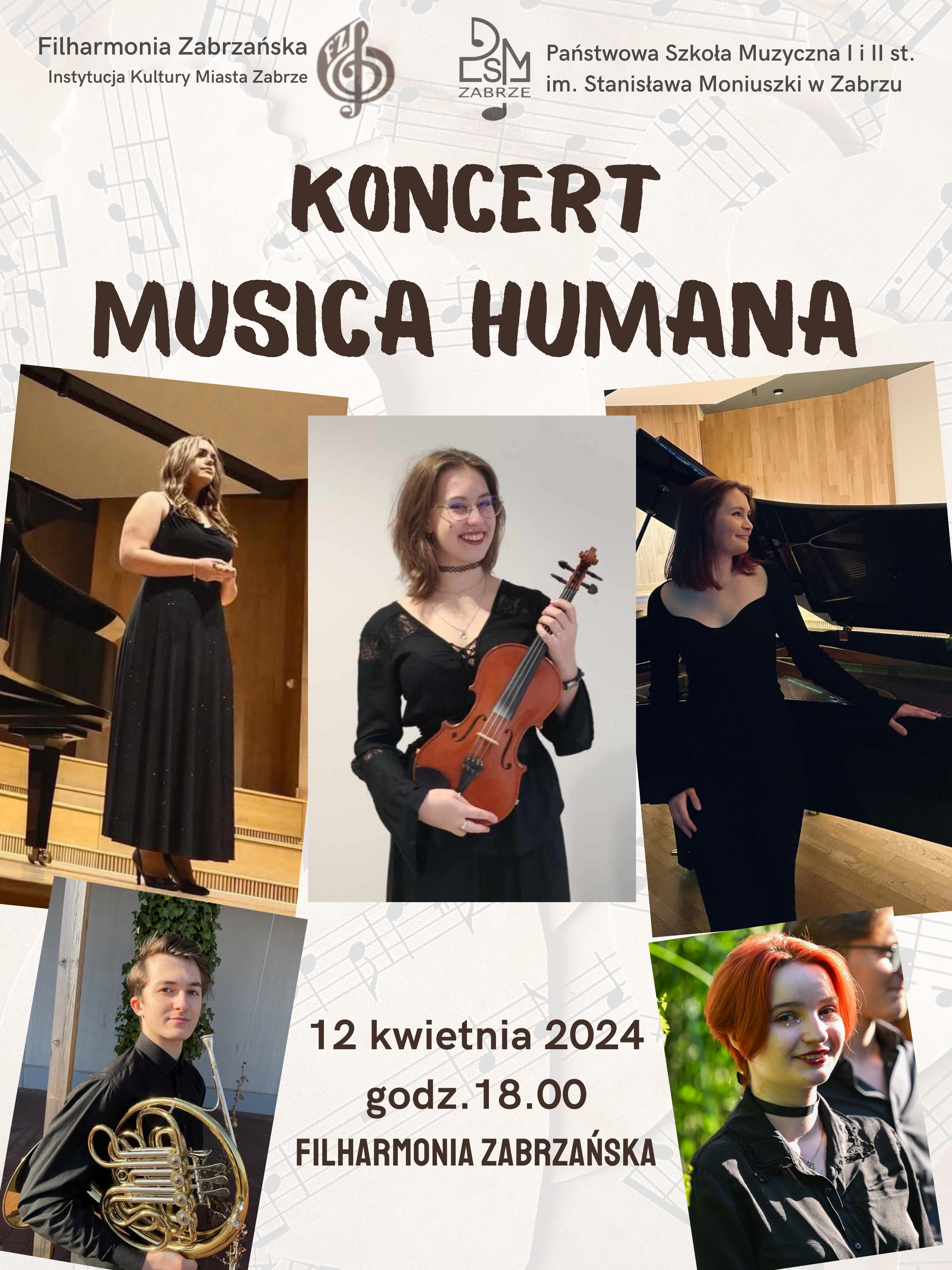 Serdecznie zapraszamy na Koncert z cyklu Musica Humana w wykonaniu uczniów szkoły muzycznej II stopnia w Zabrzu oraz młodych muzyków z innych miast. Uzdolnionej młodzieży towarzyszyć będzie orkiestra symfoniczna Filharmonii Zabrzańskiej.