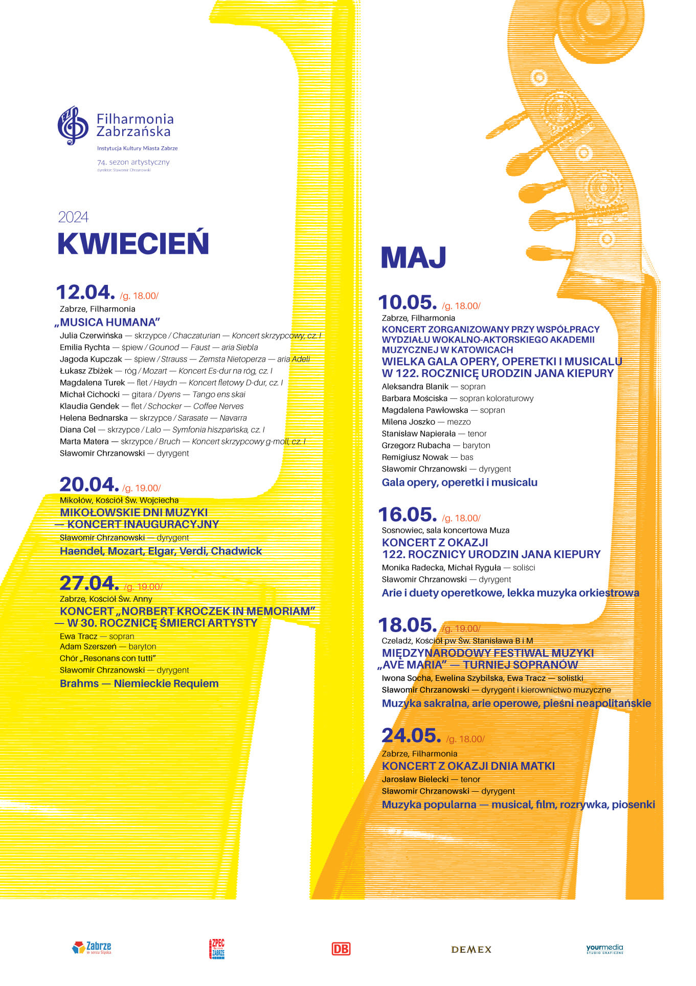 Koncert odbędzie się 12 kwietnia 2024 o godz. 18:00 w siedzibie Filharmonii Zabrzańskiej. Bilety można nabyć w kasie Filharmonii Zabrzańskiej ul. Park Hutniczy 7