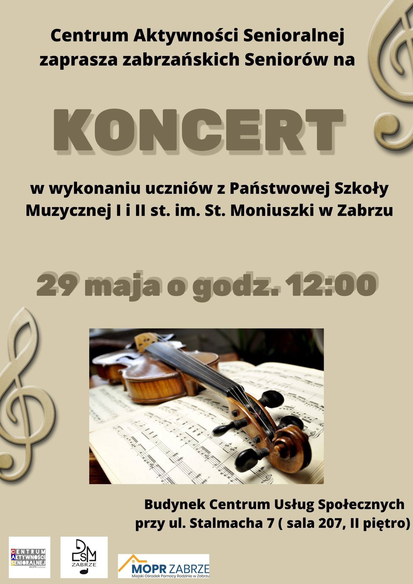 Centrum Aktywności Senioralnej w Zabrzu zaprasza na koncert w wykonaniu naszych uczniów.