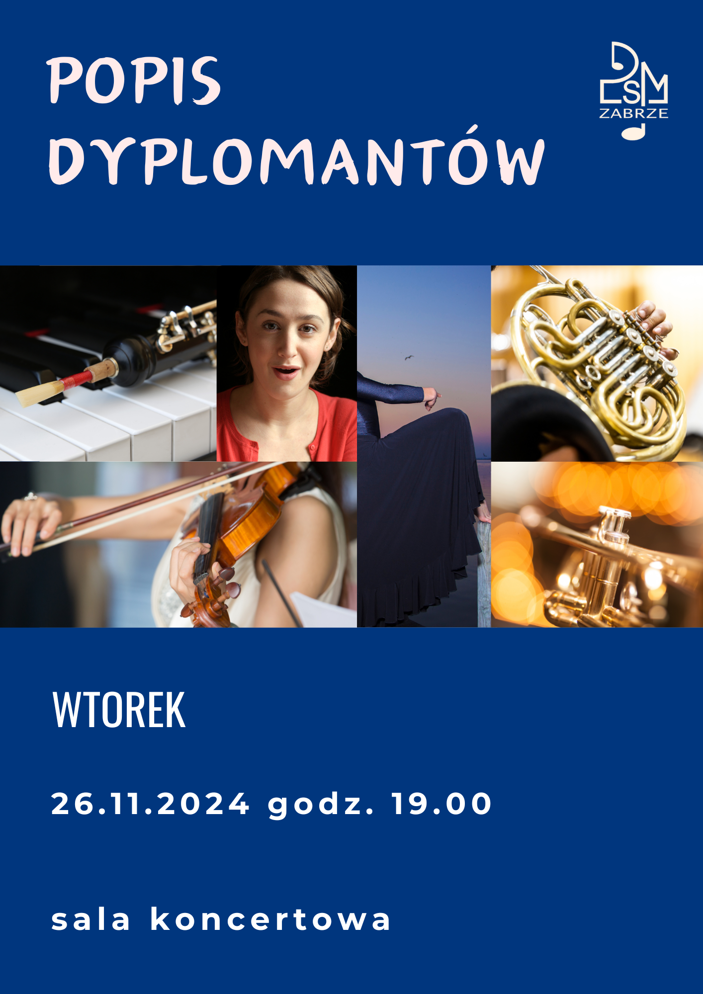 Serdecznie zapraszamy na POPIS DYPLOMANTÓW szkoły muzycznej II stopnia, który odbędzie się we wtorek, 26 listopada br. o godzinie 19.00 w sali koncertowej.