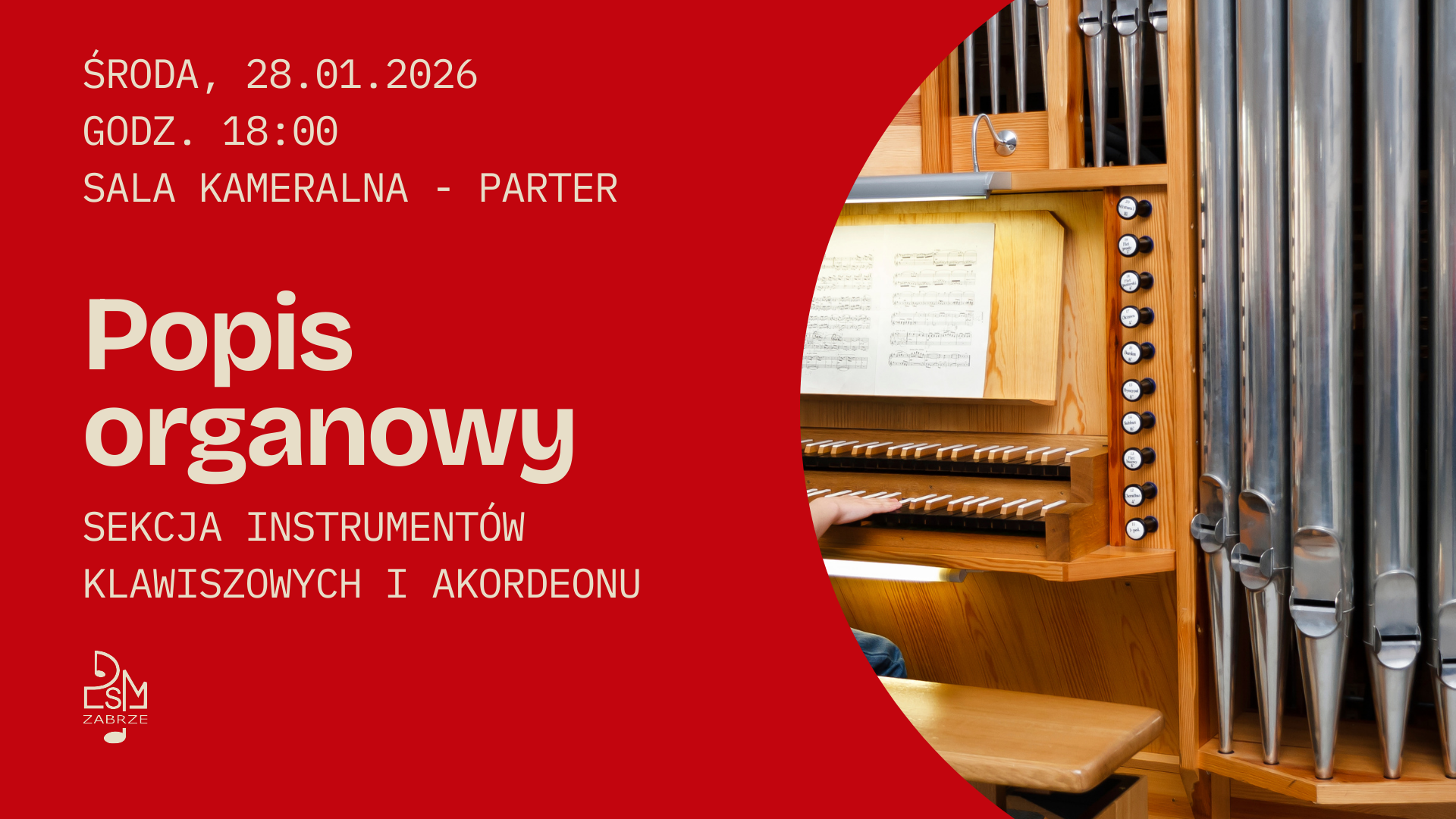 Serdecznie zapraszamy na popis organowy uczniów sekcji instrumentów klawiszowych. Popis odbędzie się w środę, 28 stycznia o godzinie 18.00 w sali kameralnej na parterze.