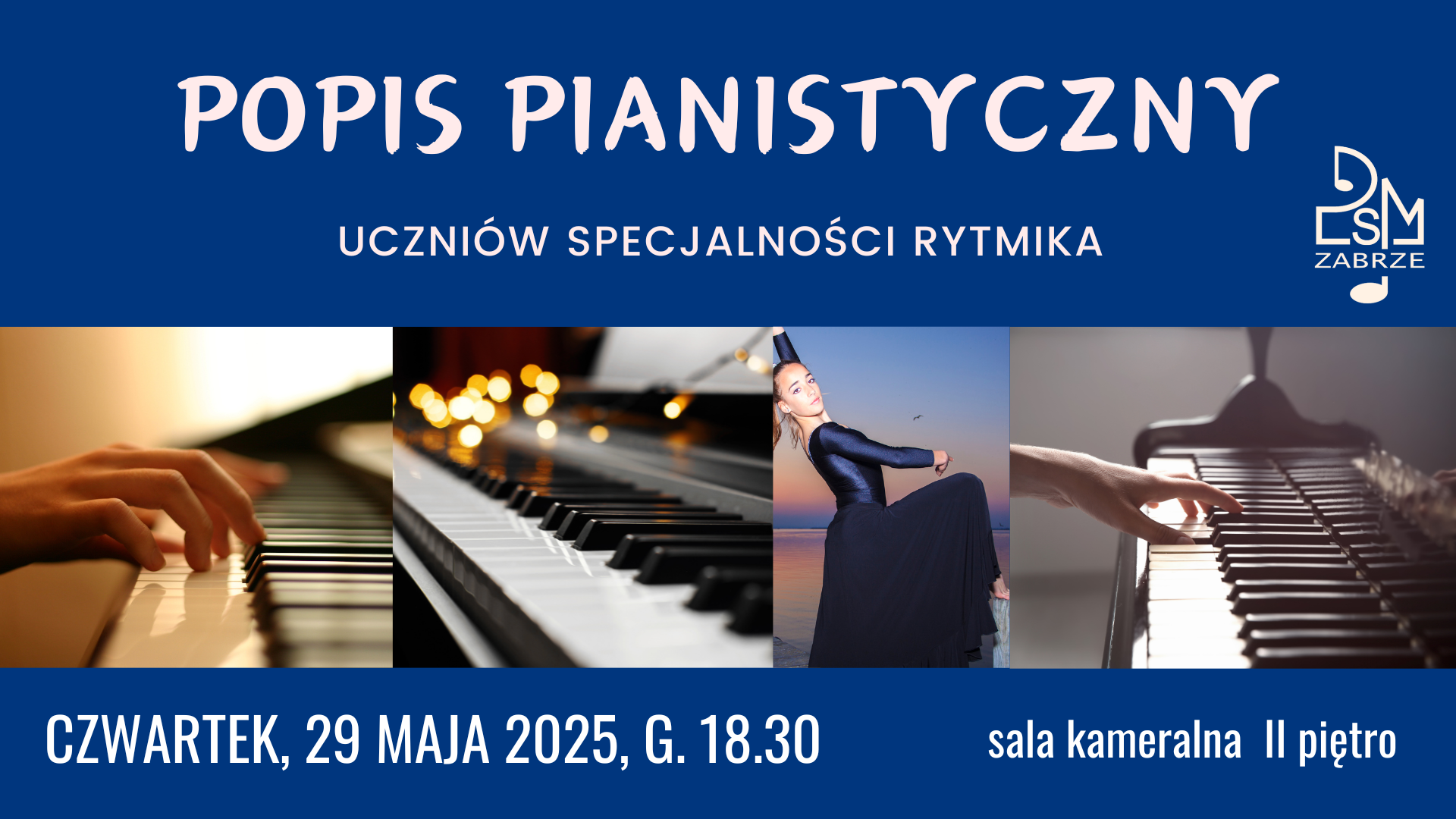 W czwartek, 29 maja br. o godz. 18.30 w sali kameralnej na II piętrze odbędzie się popis pianistyczny uczniów specjalności rytmika. Serdecznie zapraszamy!
