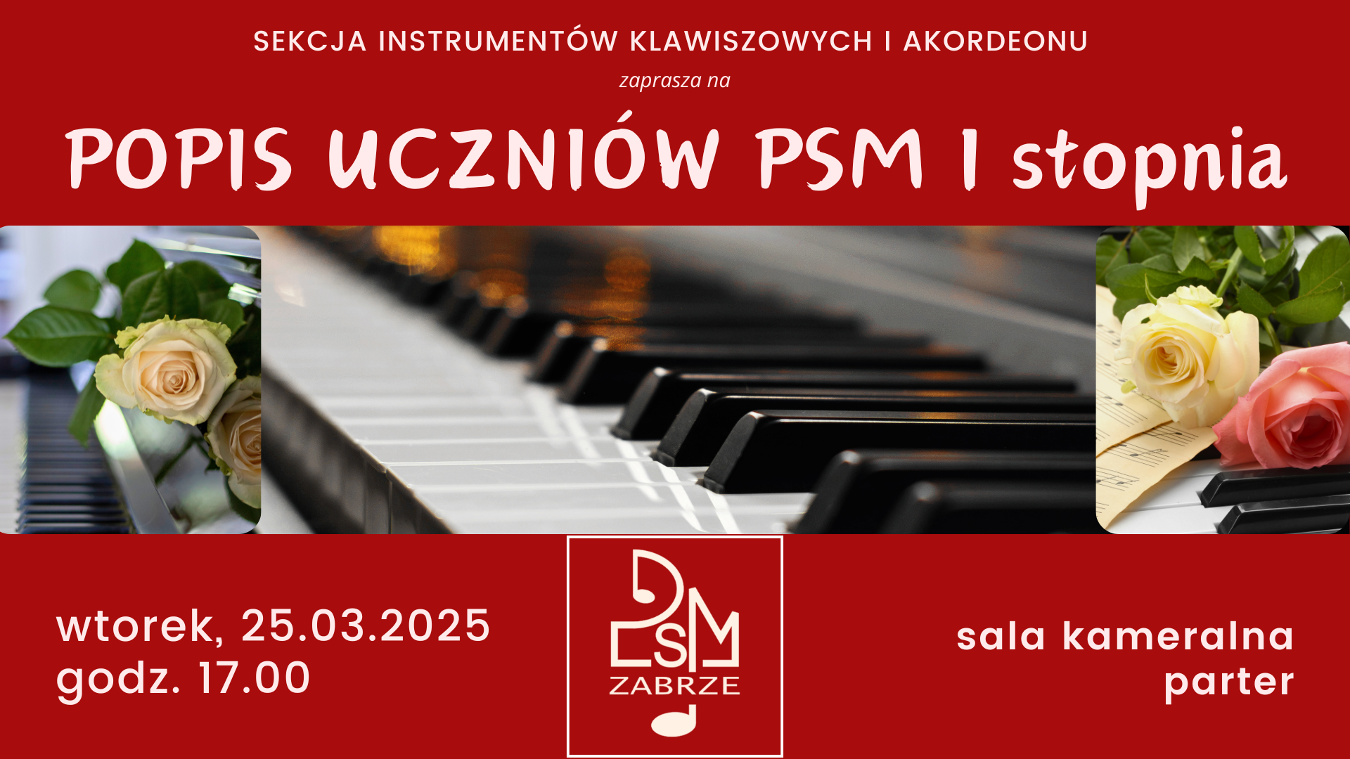 We wtorek, 25 marca br. o godzinie 17.00 w sali kameralnej na parterze odbędzie się kolejny popis uczniów sekcji instrumentów klawiszowych i akordeonu, podczas którego zaprezentują swoje umiejętności pianiści ze szkoły I stopnia. Serdecznie zapraszamy!