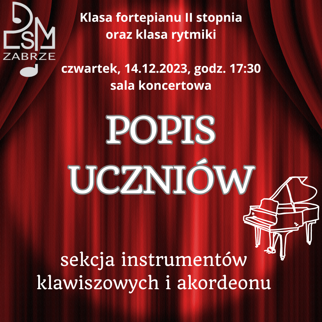 Popis pianistyczny uczniów szkoły muzycznej II stopnia 14.12.2023
