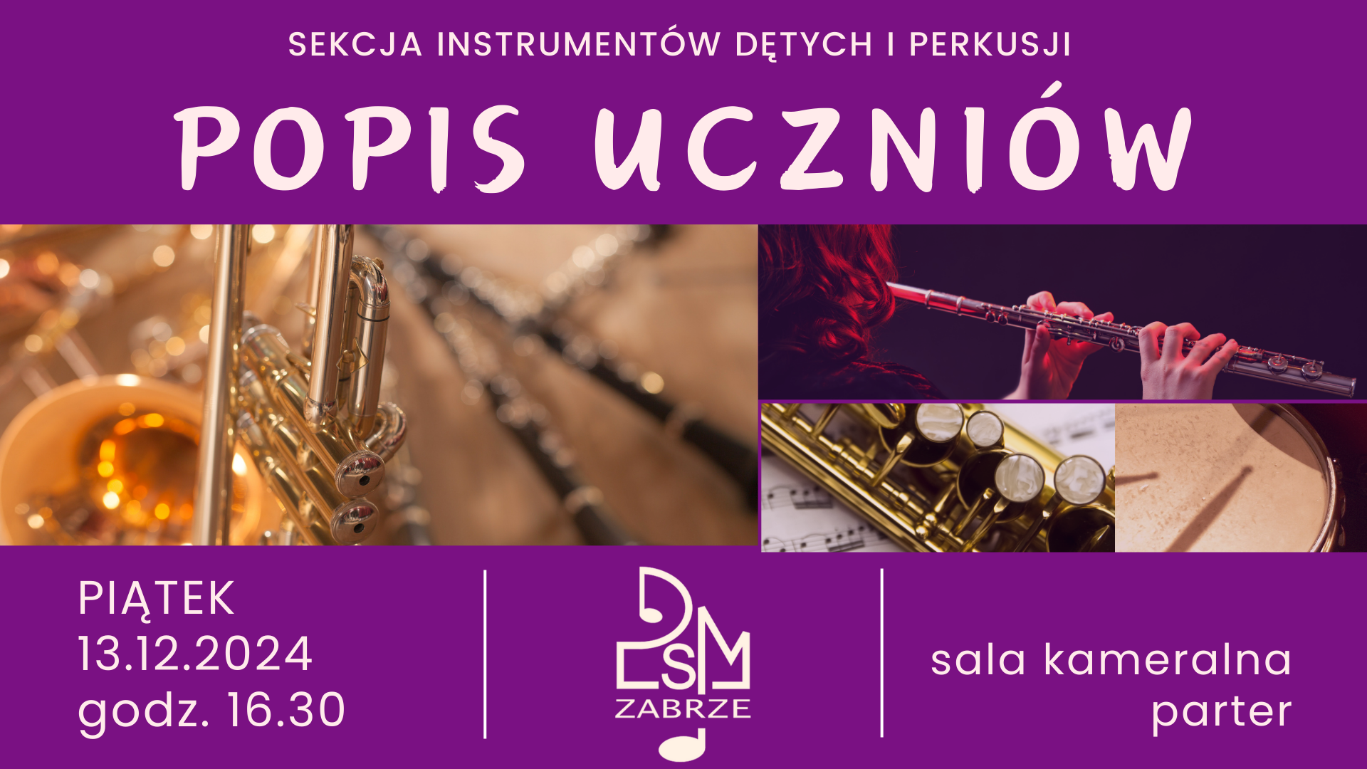 W piątek, 13 grudnia br. o godzinie 16.30 w sali kameralnej na parterze odbędzie się kolejny w tym roku szkolnym popis uczniów sekcji instrumentów dętych i perkusji. Serdecznie zapraszamy!