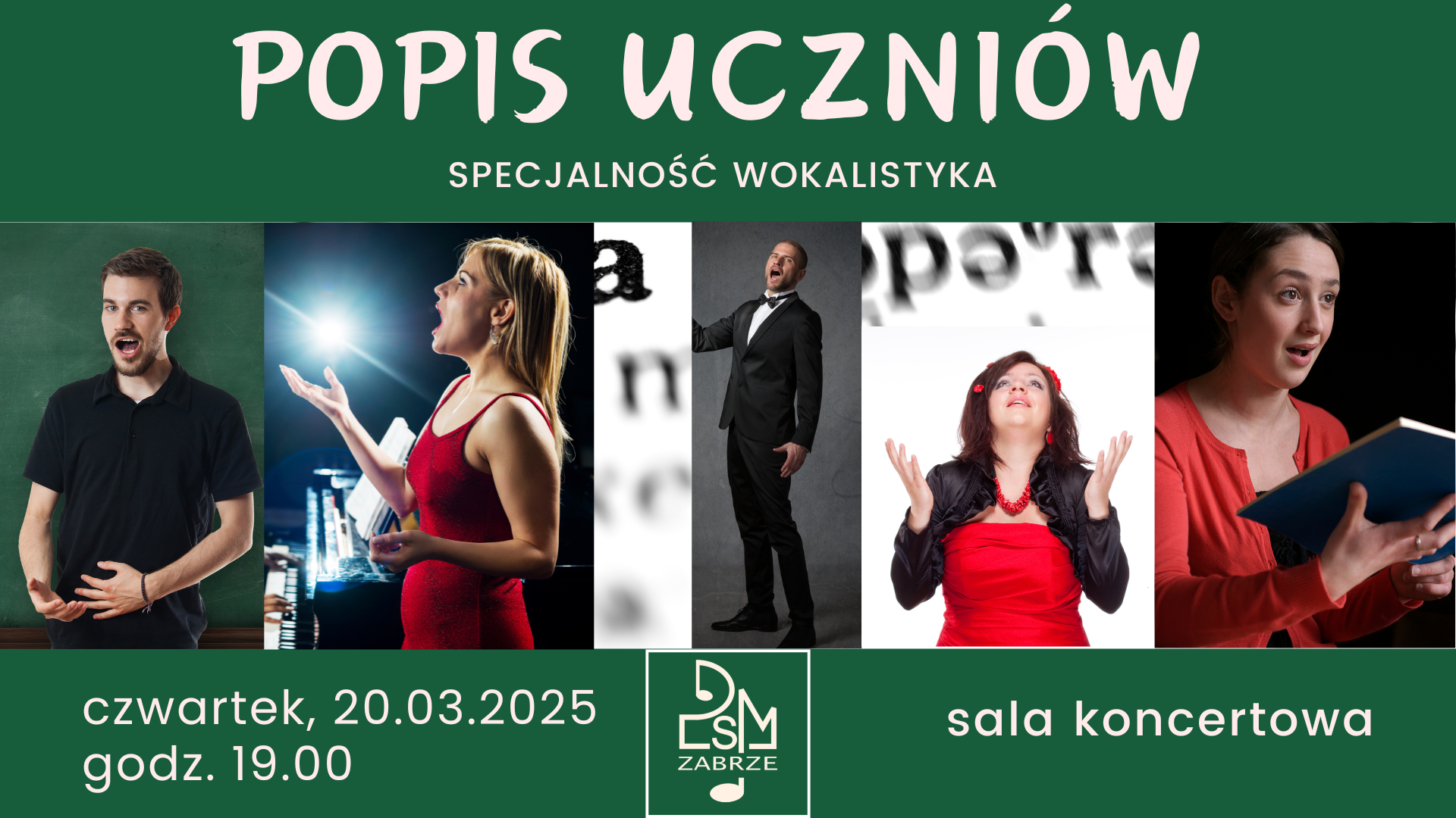 W czwartek, 20 marca 2025 r. o godzinie 19.00 w sali koncertowej odbędzie się kolejny w tym roku szkolnym popis uczniów klasy śpiewu. Serdecznie zapraszamy!