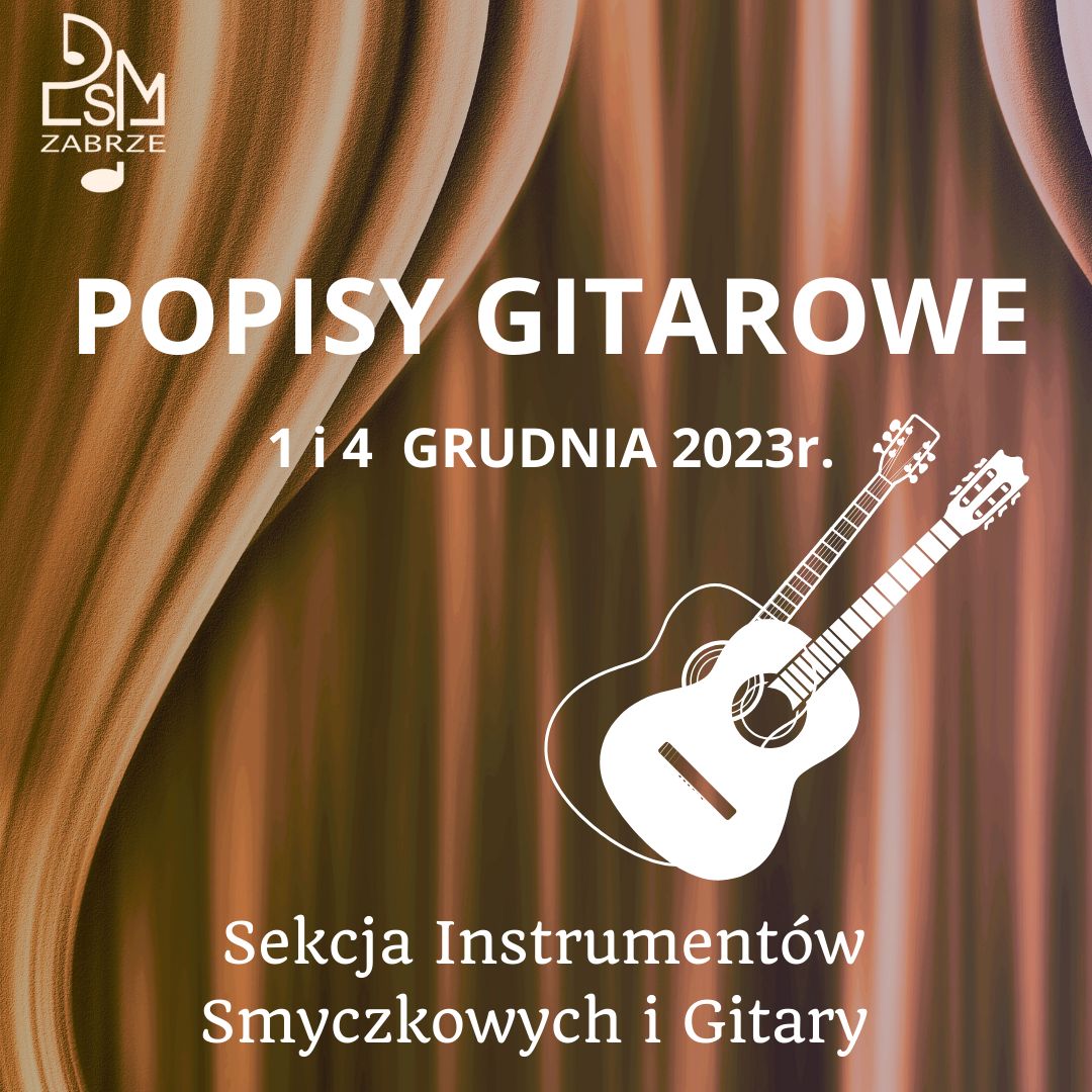 W dniach 1 i 4 grudnia 2023 r. o godzinie 16.30 w sali kameralnej na II piętrze odbędą się popisy uczniów klasy gitary szkoły muzycznej I i II stopnia. Serdecznie zapraszamy!