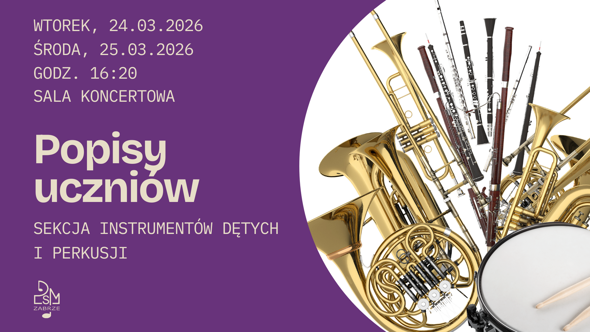 24 marca ( wtorek) i 25 marca (środa) odbędą się popisy uczniów sekcji instrumentów dętych i perkusji. Serdecznie zapraszamy na godzinę 16.20 do Sali Koncertowej.