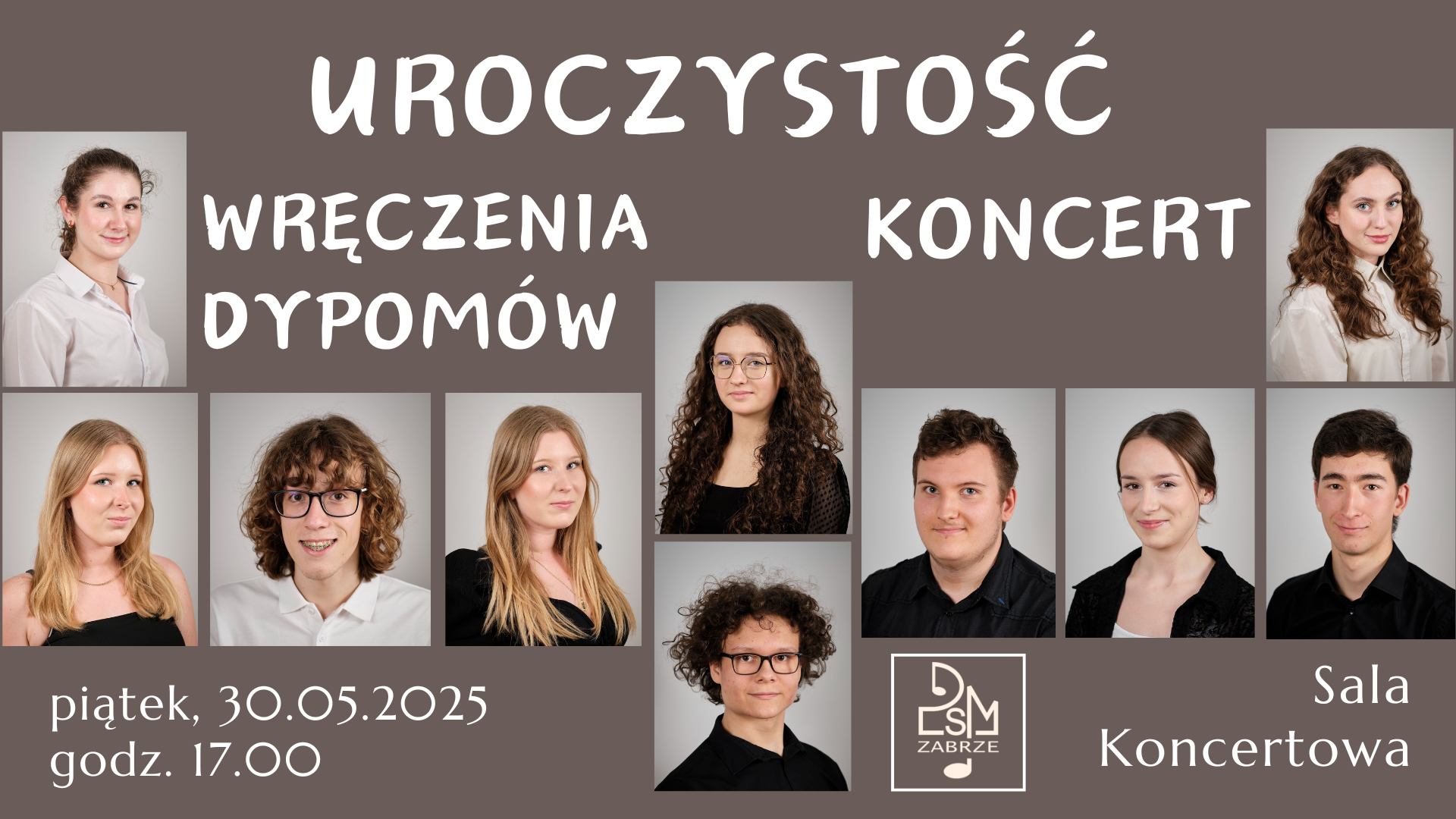 w piątek, 30 maja br. pożegnamy naszych tegorocznych dyplomantów. Uroczystość wręczenia dyplomów połączona z koncertem odbędzie się o godz. 17.00 w Sali Koncertowej. Serdecznie zapraszamy!