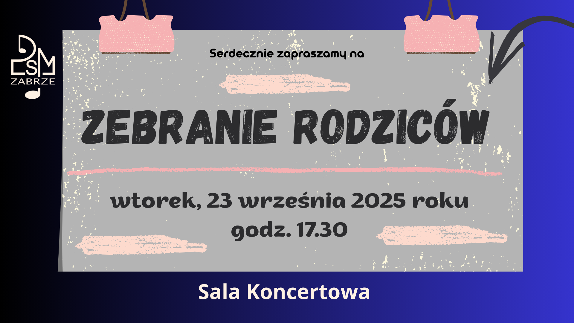 Dyrekcja Państwowej Szkoły Muzycznej I i II stopnia im. St. Moniuszki w Zabrzu serdecznie zaprasza wszystkich rodziców na zebranie, które odbędzie się we wtorek, 23 września br. o godz. 17.30 w sali koncertowej naszej szkoły.