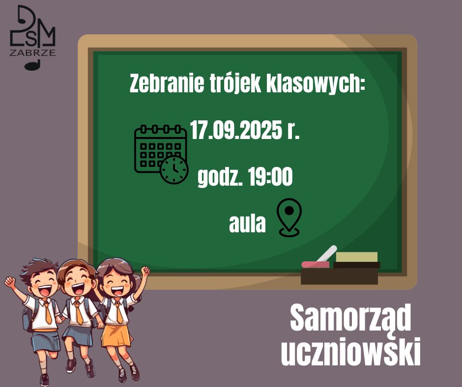 Informujemy, że w środę 17 września br. o godzinie 19.00 w auli szkoły odbędzie się pierwsze w tym roku szkolnym zebranie trójek klasowych. Serdecznie zapraszamy!