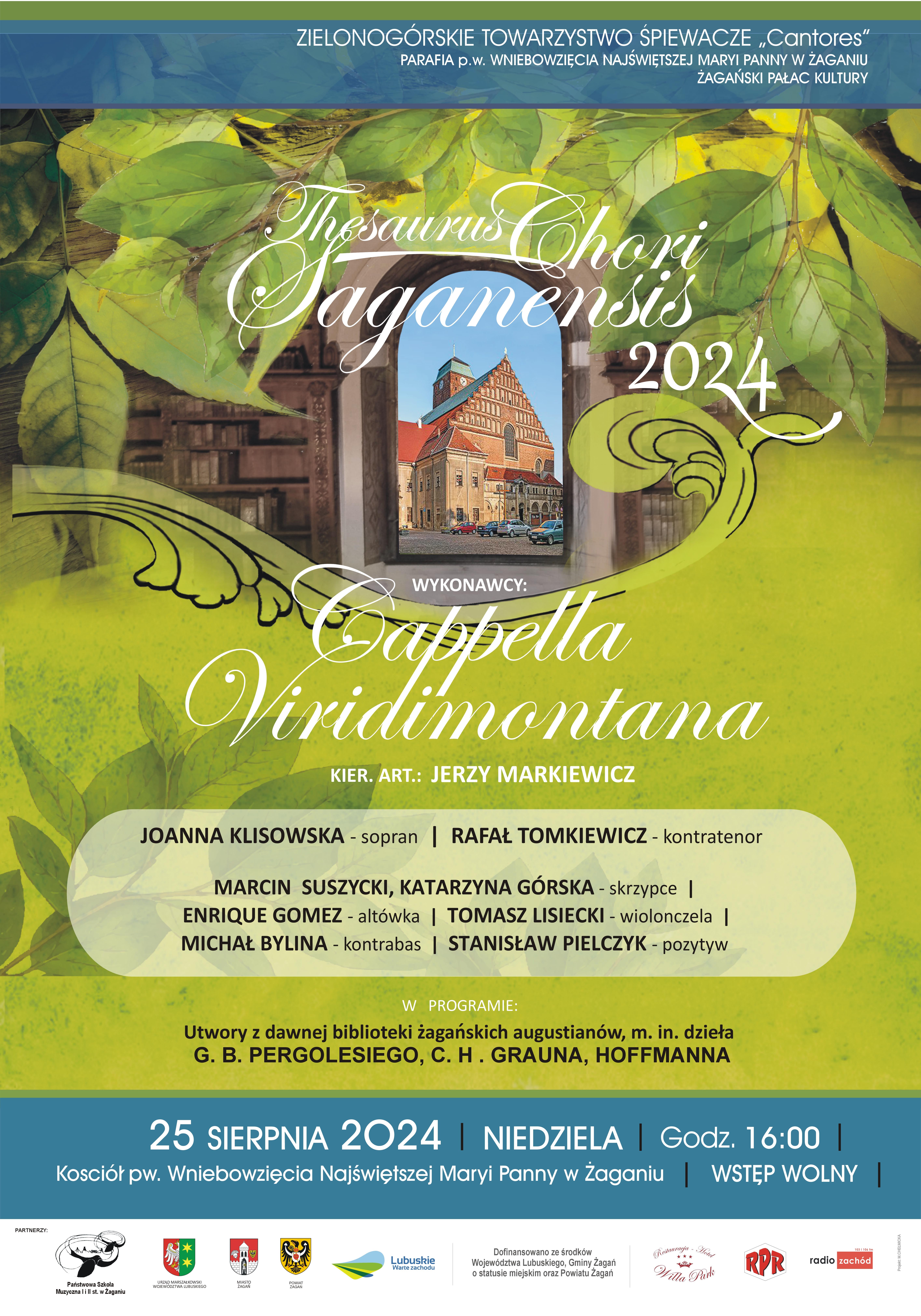 Ciekawe wydarzenie artystyczne (w przygotowaniu którego będzie miała udział także nasza Szkoła – użyczająca lokum na próby) będzie miało miejsce 27 sierpnia o godz. 16.00 w kościele p.w. Wniebowzięcia Najświętszej Maryi Panny. Cappella Viridimontana, pod dyrekcją Jerzego Markiewicza, zaprasza na koncert muzyki baroku. W programie – dzieła przechowywane niegdyś w klasztorze augustianów w Żaganiu, na nowo opracowane i przygotowane do wykonania po wiekach „nieistnienia”.