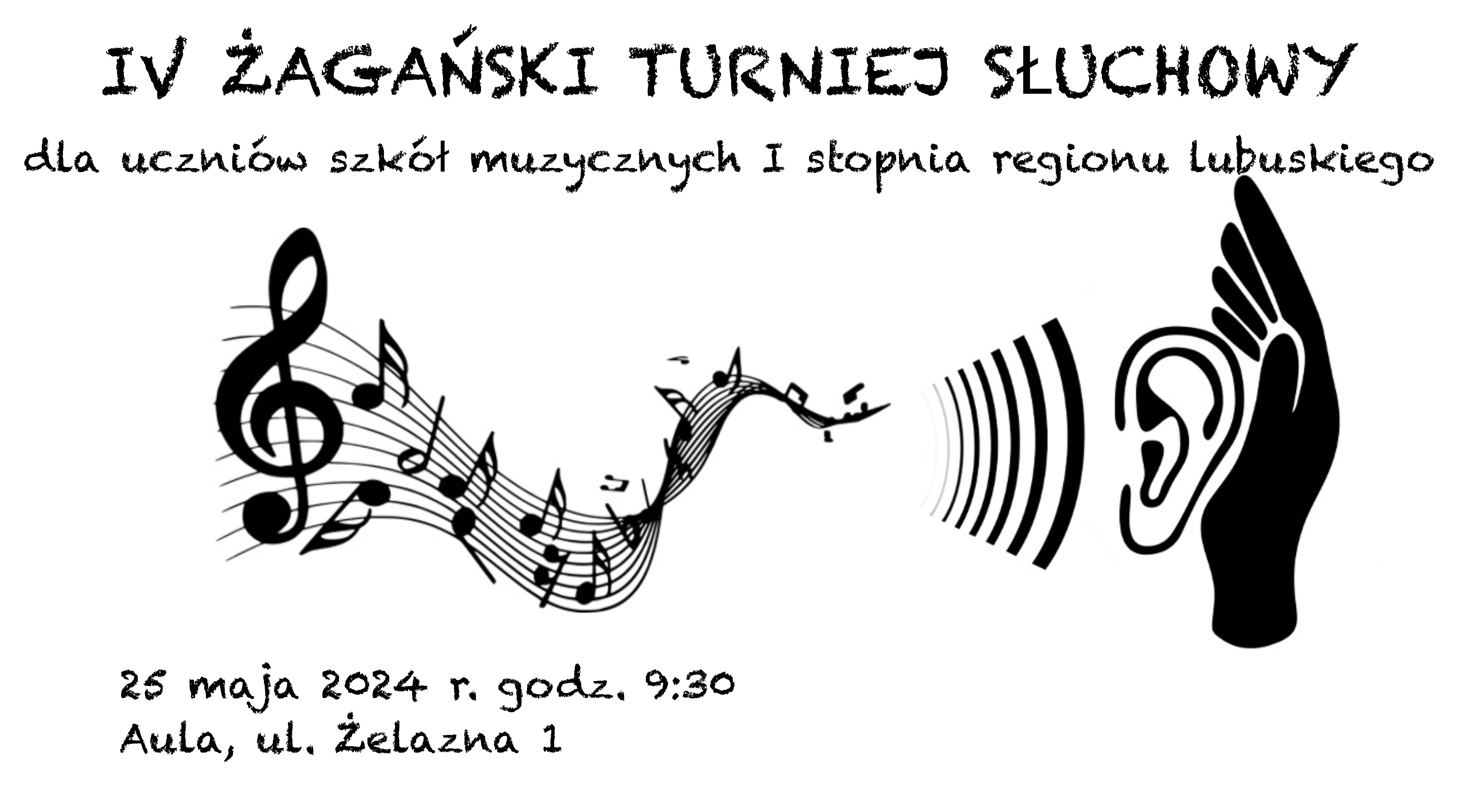Już najbliższą sobotę, 25 maja 2024 r. nasza Szkoła będzie gościła uczestników IV Żagańskiego Turnieju Słuchowego uczniów szkół muzycznych I stopnia regionu lubuskiego. Zgromadzi on uczestników z naszego regionu, zwłaszcza tych, którzy chcą kontynuować naukę muzyki, rywalizując ze sobą w zakresie przedmiotu kształcenie słuchu. Turniej rozpocznie się o godz. 9:30 zebraniem w Auli naszej szkoły przy ul. Żelaznej 1.