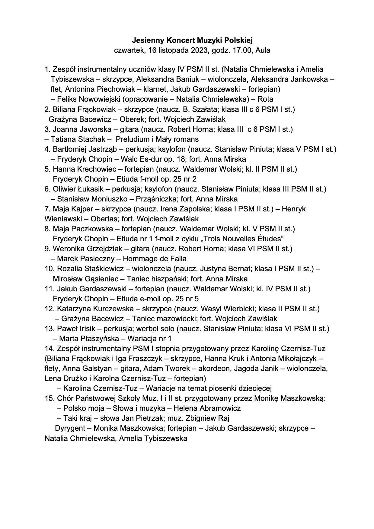 Jesienny Koncert Muzyki Polskiej