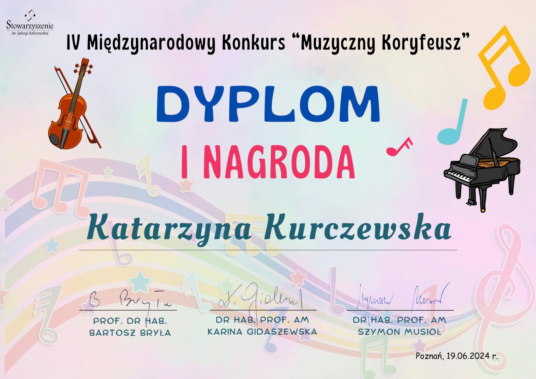 Katarzyna Kurczewska laureatką IV Międzynarodowego Konkursu "Muzyczny Koryfeusz"