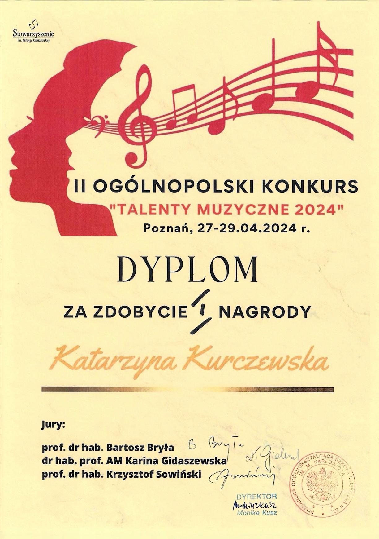 Katarzyna Kurczewska laureatką Ogólnopolskiego Konkursu „Talenty Muzyczne 2024”