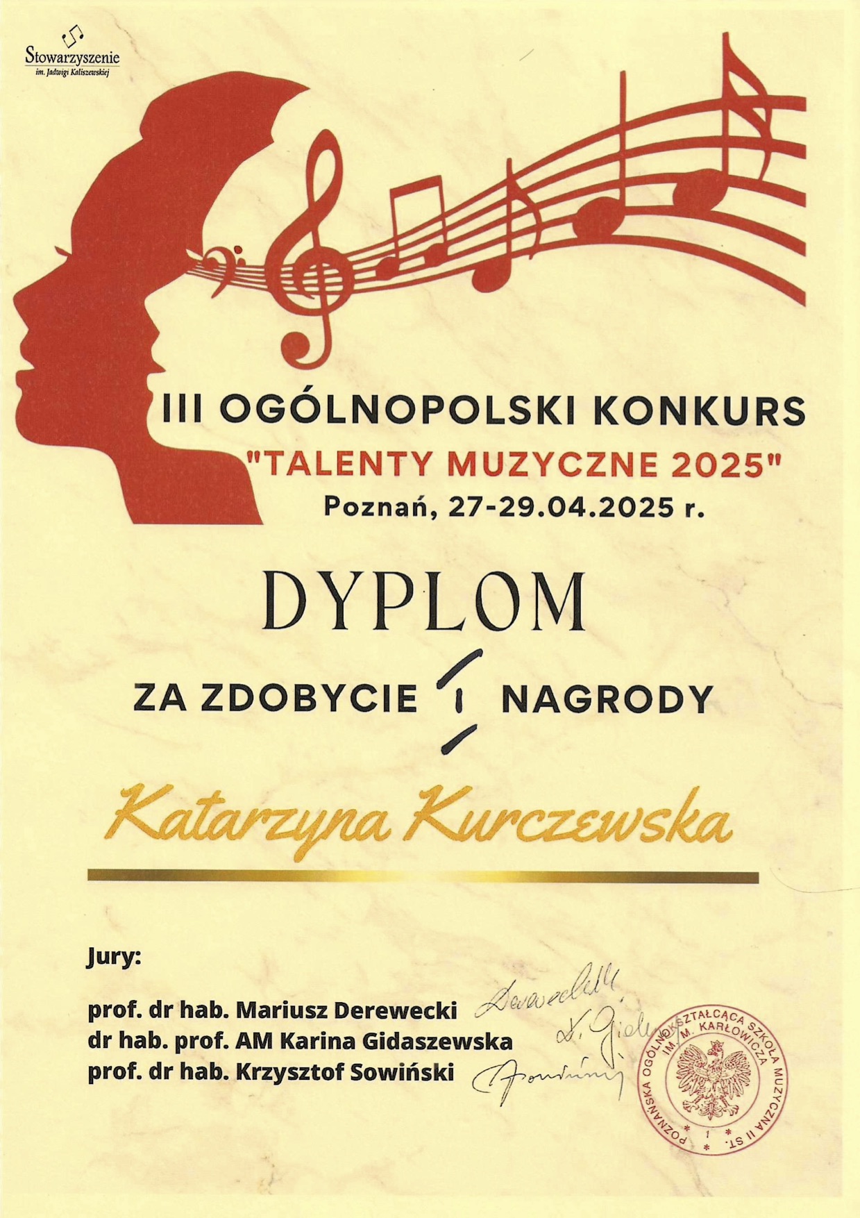 Katarzyna Kurczewska laureatką III Ogólnopolskiego Konkursu "Talenty Muzyczne 2025"