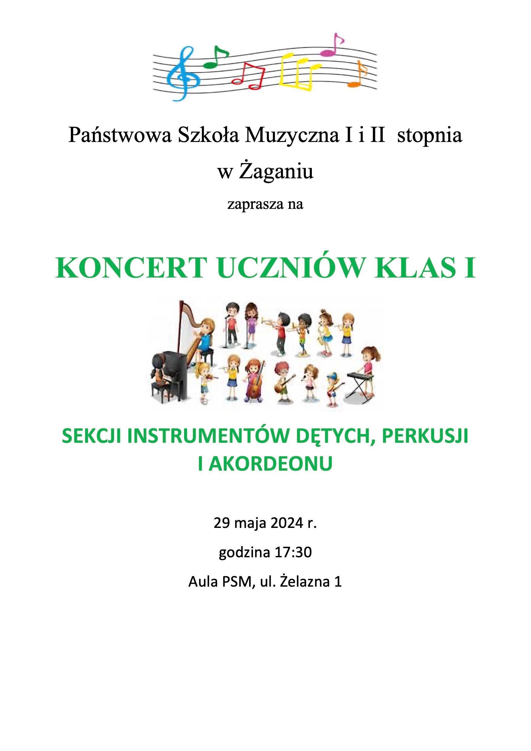 29 maja 2024 r. o godz. 17:30 zapraszamy do Auli naszej szkoły na Koncert klas I sekcji instrumentów dętych, perkusji i akordeonu.