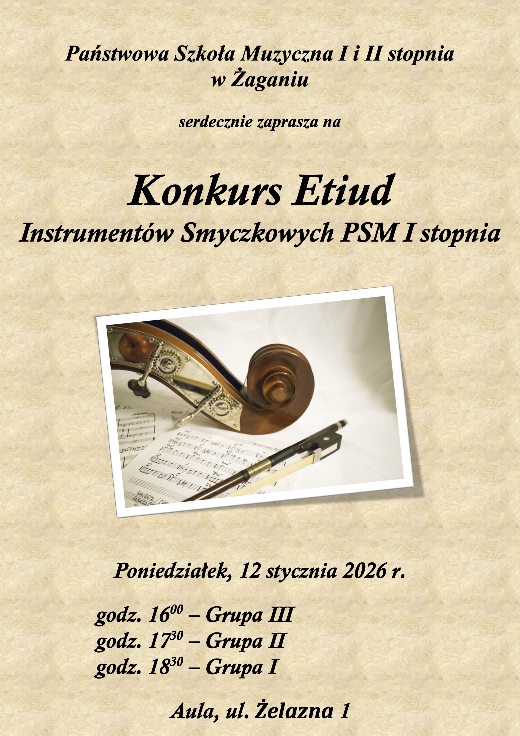 Konkurs Etiud sekcji smyczkowej PSM I stopnia - 12.01.2026