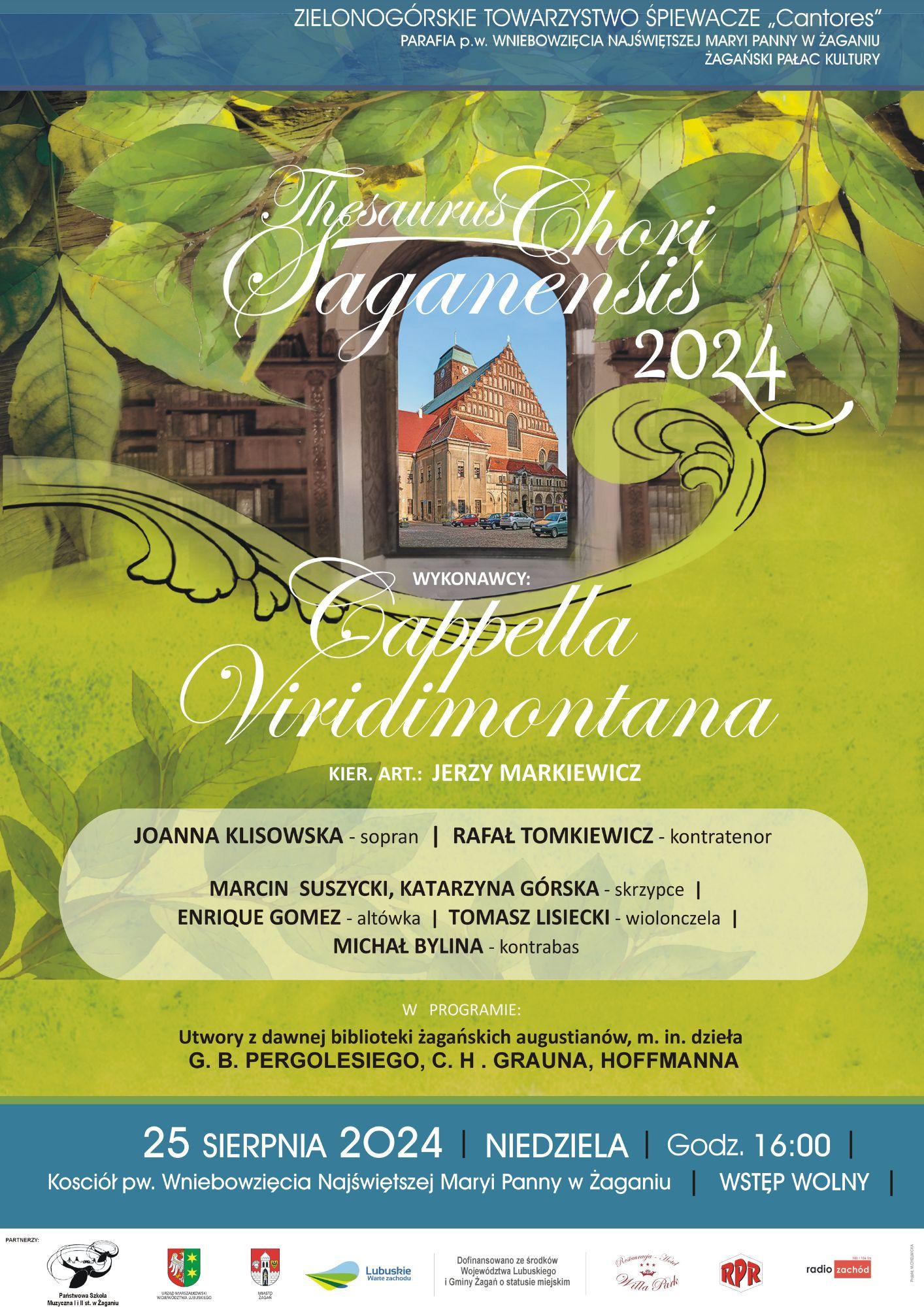 Ciekawe wydarzenie artystyczne (w przygotowaniu którego będzie miała udział także nasza Szkoła – użyczająca lokum na próby) będzie miało miejsce 25 sierpnia o godz. 16.00 w kościele p.w. Wniebowzięcia NMP. Cappella Viridimontana, pod dyrekcją Jerzego Markiewicza, zaprasza na koncert muzyki baroku. W programie – dzieła z dawnej biblioteki żagańskich augustianów, m. in. G. B. Pergolesiego, C. H. Grauna, Hoffmanna.