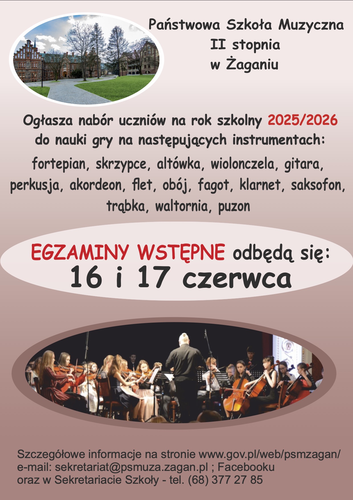 - z przedmiotów ogólnomuzycznych: 17 czerwca 2025 r., godz. 16:00