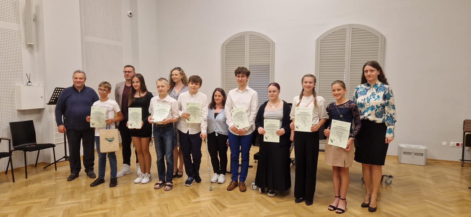 W sobotę, 25 maja 2024 r. odbył się w naszej szkole IV Żagański Turniej Słuchowy. W Turnieju wzięło udział 11 uczestników - poza naszymi uczniami, w Turnieju wzięli również udział uczniowie ze szkół muzycznych z następujących miast: Żary, Słubice, Krosno Odrzańskie, Gubin i Zielona Góra. Miło nam poinformować, że w gronie laureatów Turnieju znalazły się nasze uczennice: Lena Drużko i Iga Fraszczyk (obie uczą się w klasie VI PSM I stopnia). Iga zdobyła II miejsce, natomiast Lena - Wyróżnienie. Uczennice do Turnieju przygotował mgr Władysław Kliszcz. Gratulujemy!