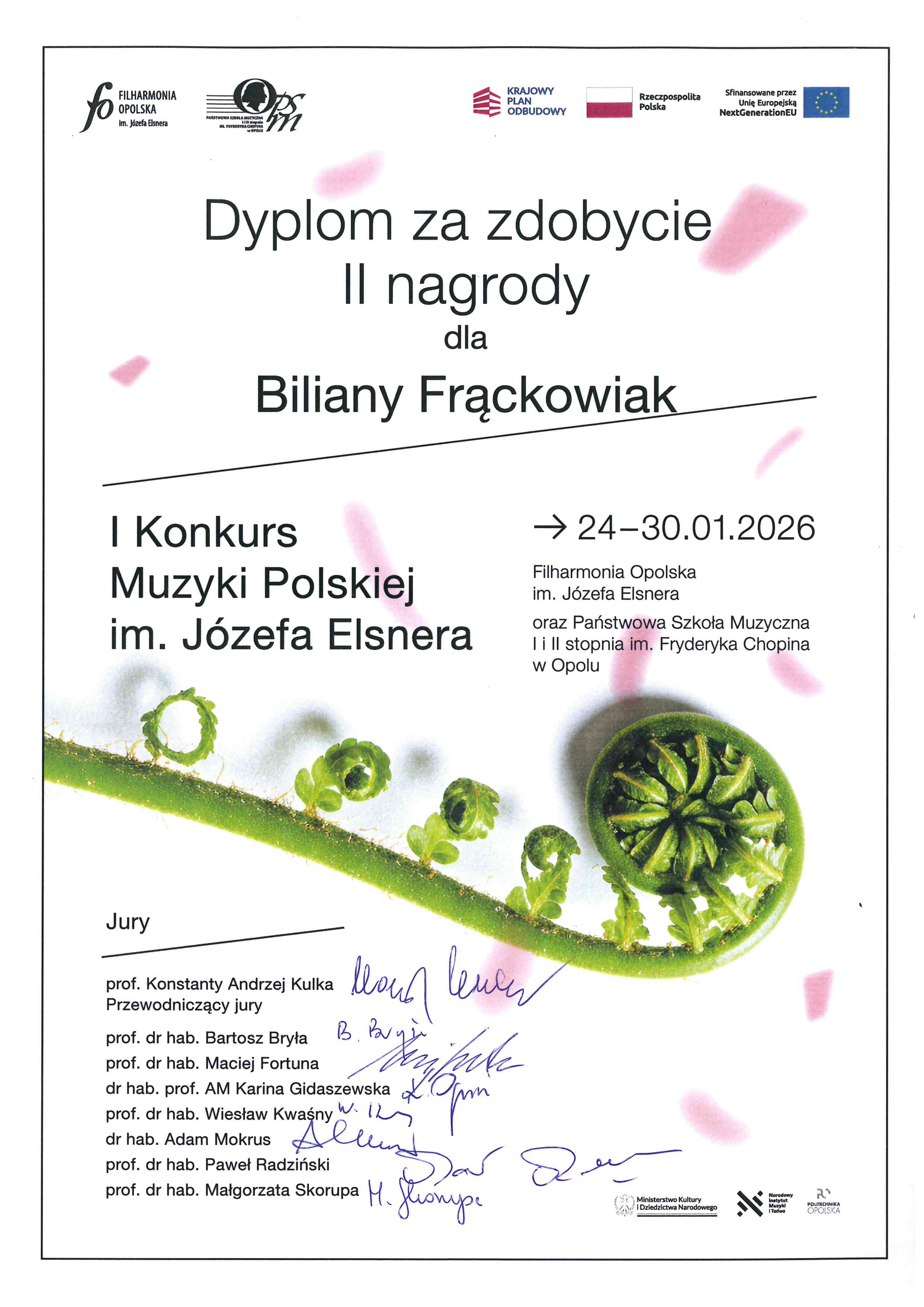 W dniach: 24-30 stycznia 2026 roku w Opolu odbywał się I Konkursu Muzyki Polskiej im. Józefa Elsnera.