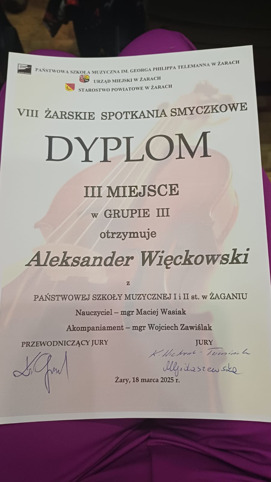 18 marca 2025 r. w Państwowej Szkole Muzycznej I stopnia im. G. Ph. Telemanna w Żarach odbywały się 8 Żarskie Spotkania Smyczkowe Lubuskich Szkół Muzycznych I stopnia.