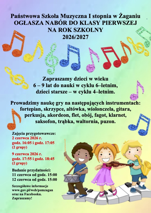 Jeśli Wasze dziecko interesuje się muzyką, chciałoby grać na instrumencie, zauważyliście u niego zdolności w tym kierunku - serdecznie zapraszamy do rozpoczęcia kształcenia muzycznego: