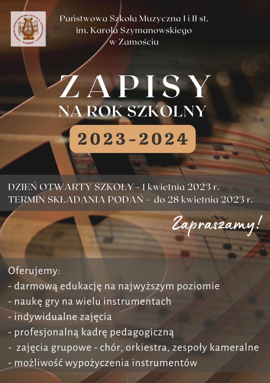 Wszyscy kandydaci ubiegający się o przyjęcie do szkoły składają wniosek rekrutacyjny z podpisami obojga rodziców wraz z załącznikami i zaświadczeniem lekarskim w sekretariacie szkoły lub drogą elektroniczną do 8 maja 2023 roku na adres: sekretariat@psmzam.pl