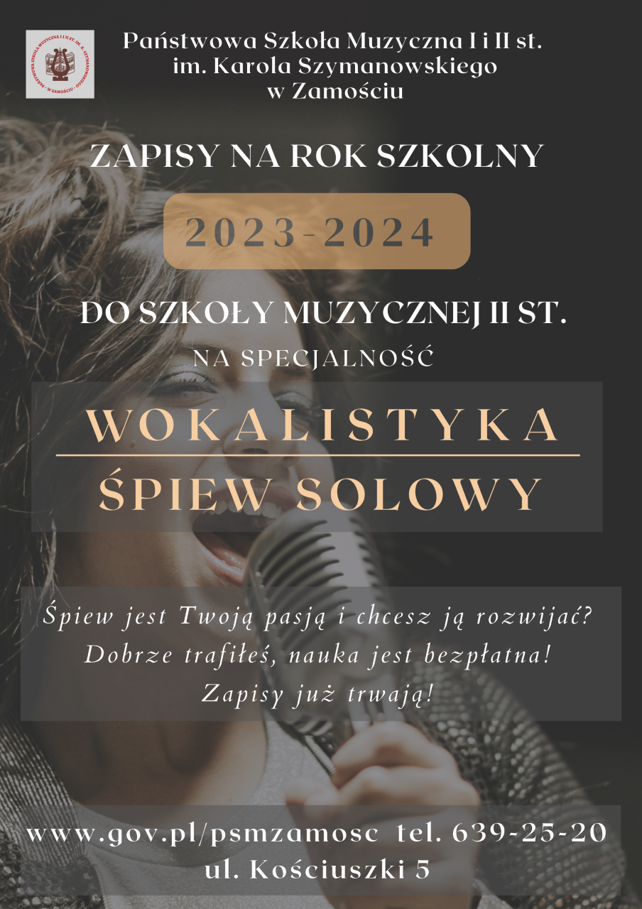 W przypadku kandydata ubiegającego się o przyjęcie do szkoły w specjalności wokalistyka, wymagane jest zaświadczenie lekarza specjalisty audiologa/foniatry.
