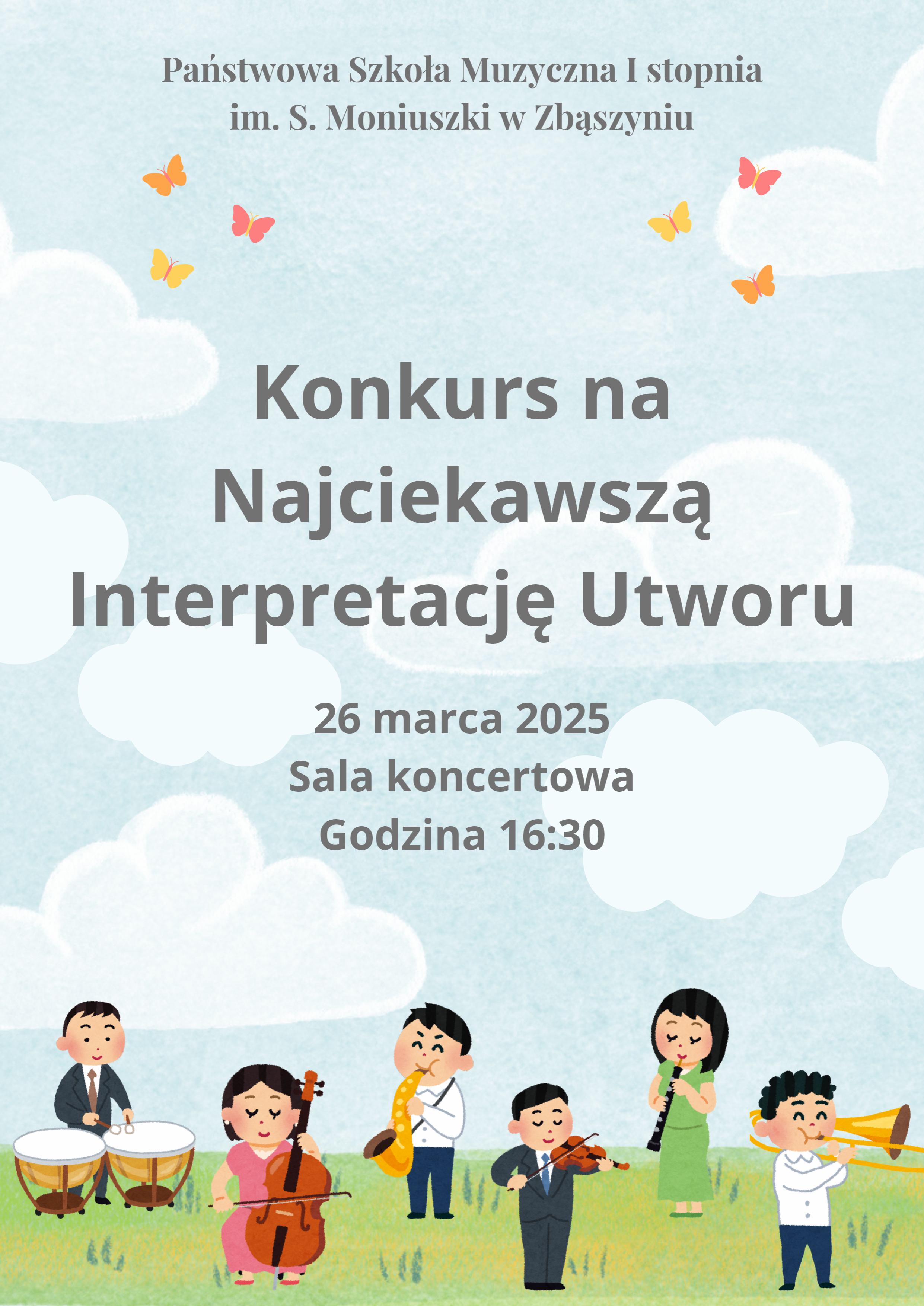 26 marca w naszej szkole odbędzie się kolejna edycja Konkursu na najciekawszą interpretację utworu. W konkursie wezmą udział uczniowie sekcji instrumentów dętych, smyczkowych, perkusji i gitary. Zapraszamy!