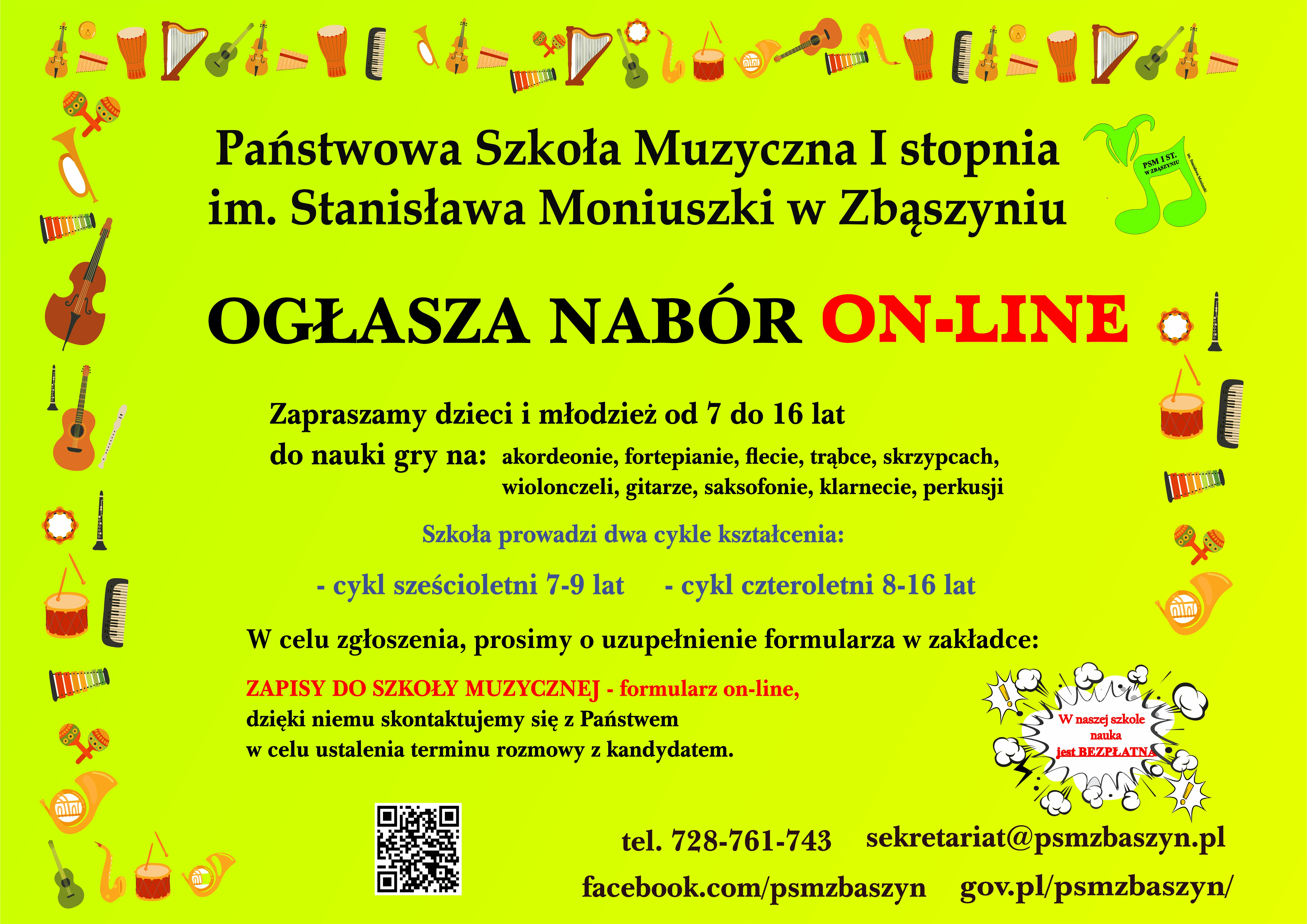 Rekrutacja do PSM I st. w Zbąszyniu dobiegła końca. Poinformujemy Państwa telefonicznie o przyjęciu do szkoły, a lista przyjętych zastanie wywieszona w holu szkoły do 30 czerwca 2025 r.
