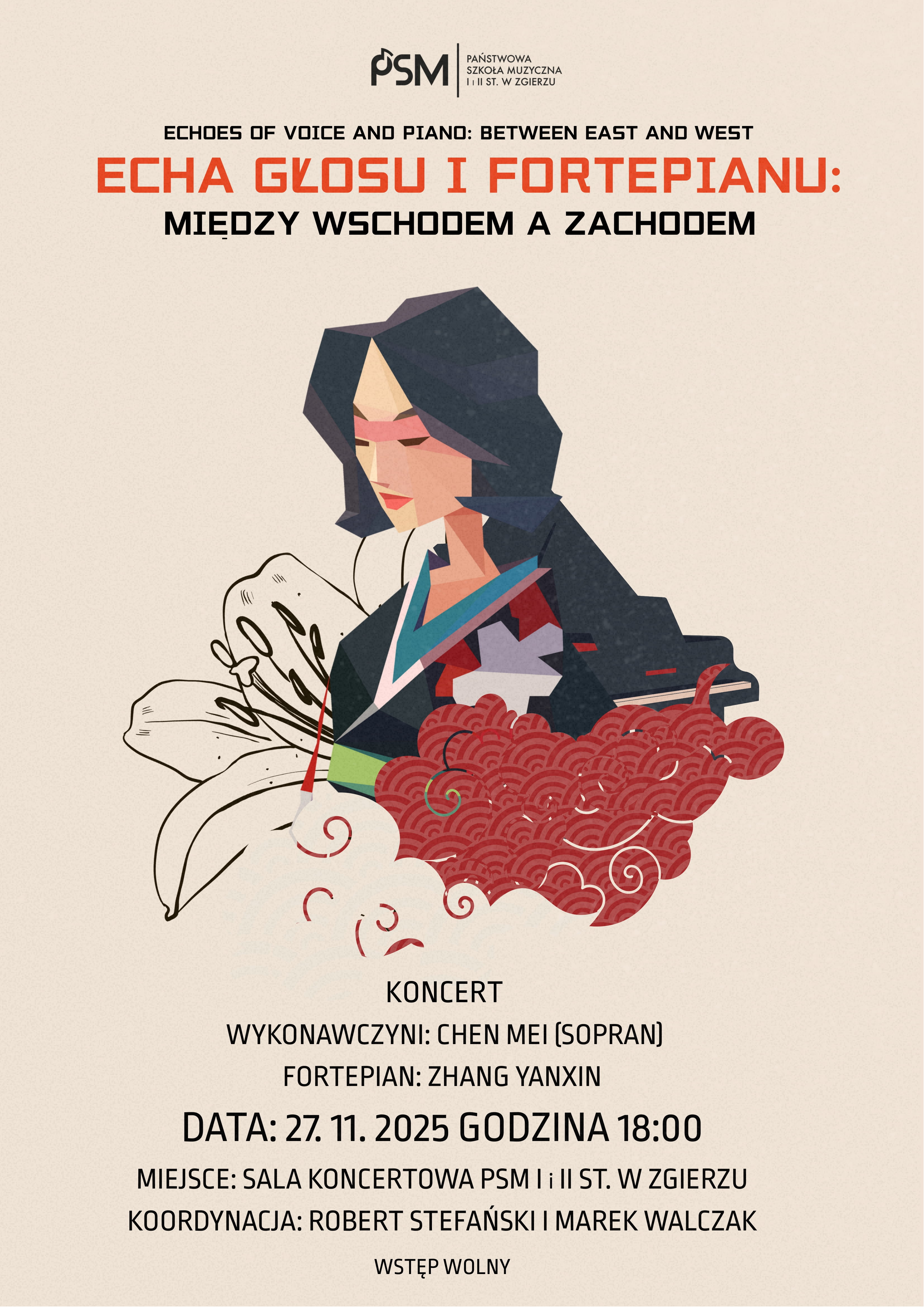 Państwowa Szkoła Muzyczna I i II stopnia w Zgierzu zaprasza na koncert „Echa głosu i fortepianu – Między wschodem, a zachodem”.