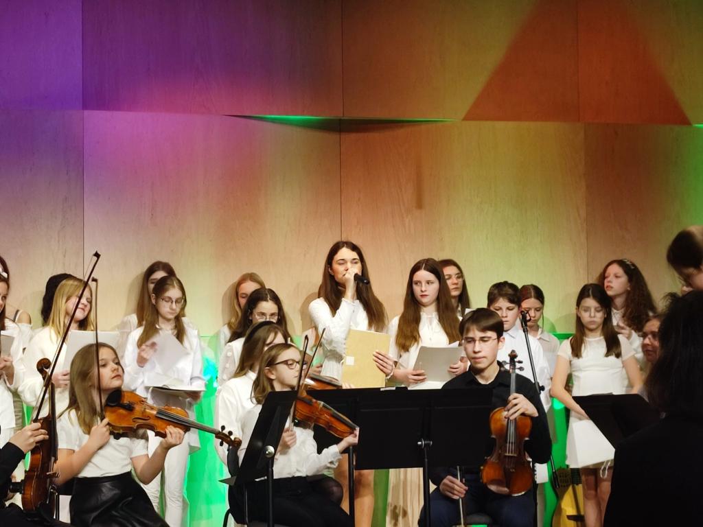 24 stycznia znów mogliśmy poczuć atmosferę Świąt Bożego Narodzenia podczas koncertu słowno- muzycznego pt: Narodzenia czas. Dzięki zaangażowaniu nauczycieli i uczniów naszej szkoły powstało piękne wydarzenie muzyczne, które na długo pozostanie w naszej pamięci „ Niech to światło ogromne stanie się naszym domem , niech w promieniach tej gwiazdy ręce ogrzeje każdy „ W koncercie udział wzięli : Chór i zespoły wokalne pod kierunkiem Eweliny Bień przy akompaniamencie Macieja Zaforemskiego , Zespół rozrywkowy przygotowany przez Sławomira Stopczyka i Krzysztofa Kociszewskiego , Orkiestra smyczkowa pod dyrekcją Marka Walczaka i Eli Stolarczyk Niewiadomej, Orkiestra dęta pod dyrekcją Adriana Walkiewicza, Zespół gitarowy pod kierunkiem Macieja Zielińskiego, Zespół akordeonowy przygotowany przez Sławomira Stopczyka, Zespoły rytmiczne pod kierunkiem Sylwii Wach Walkiewicz, Anny Maciejewskiej i Małgorzaty Stoltmann, akompaniatorzy: Sylwia Wach Walkiewicz, Krzysztof Kociszewski, Maciej Zaforemski, Jakub Jeziorowski . Nad całością brzmienia i oświetlenia czuwali Michał Pietrzak, Adam Marańda oraz Maciej Borowiecki . Dziękujemy serdecznie.