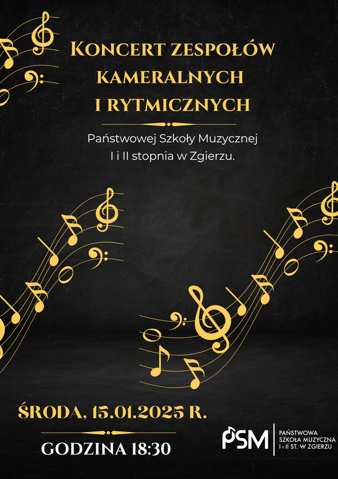 Zapraszamy na koncert zespołów kameralnych i rytmicznych.