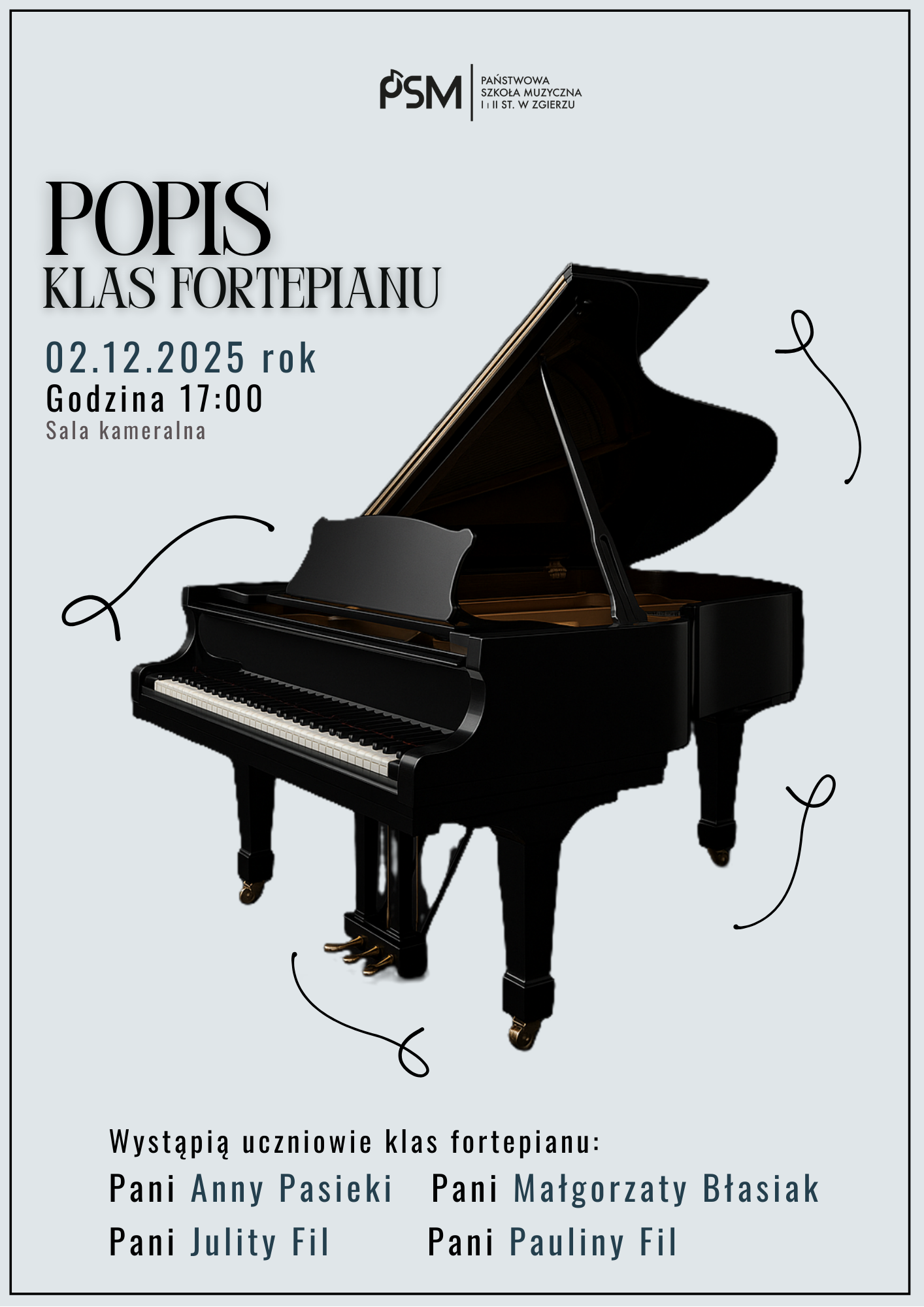 Wystąpią uczniowie klas fortepianu: