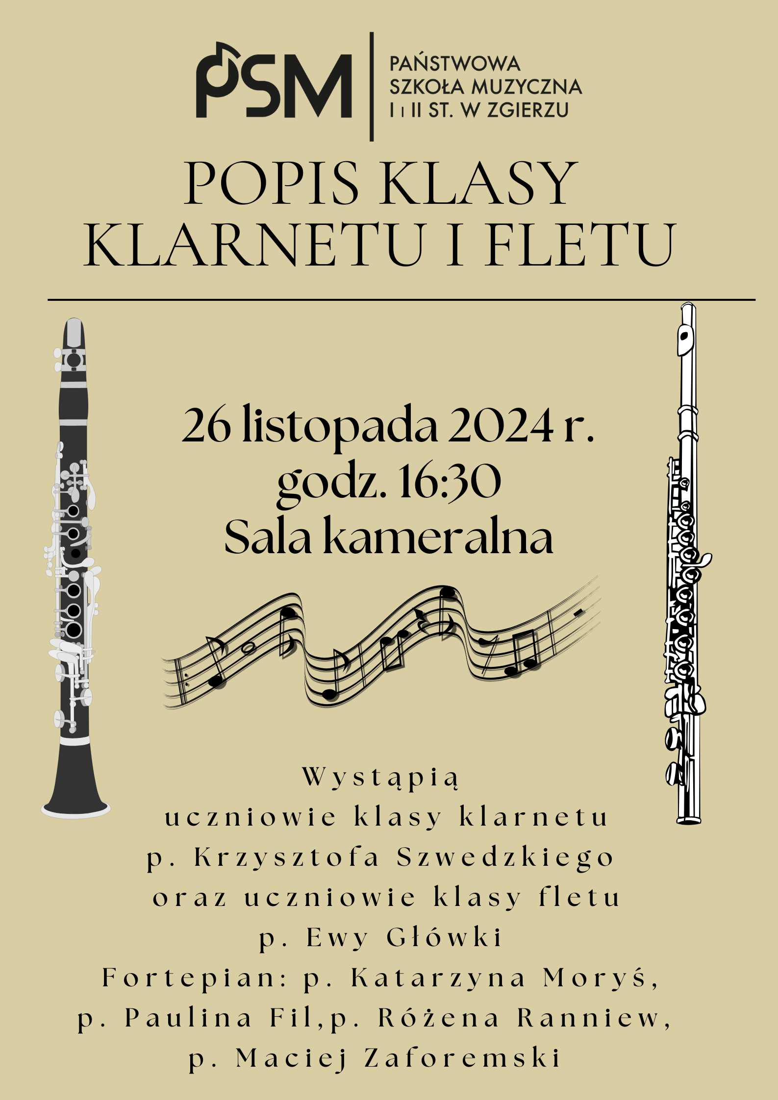 Uczniowie klasy klarnetu p. Krzysztofa Szwedzkiego oraz uczniowie klasy fletu p. Ewy Główki