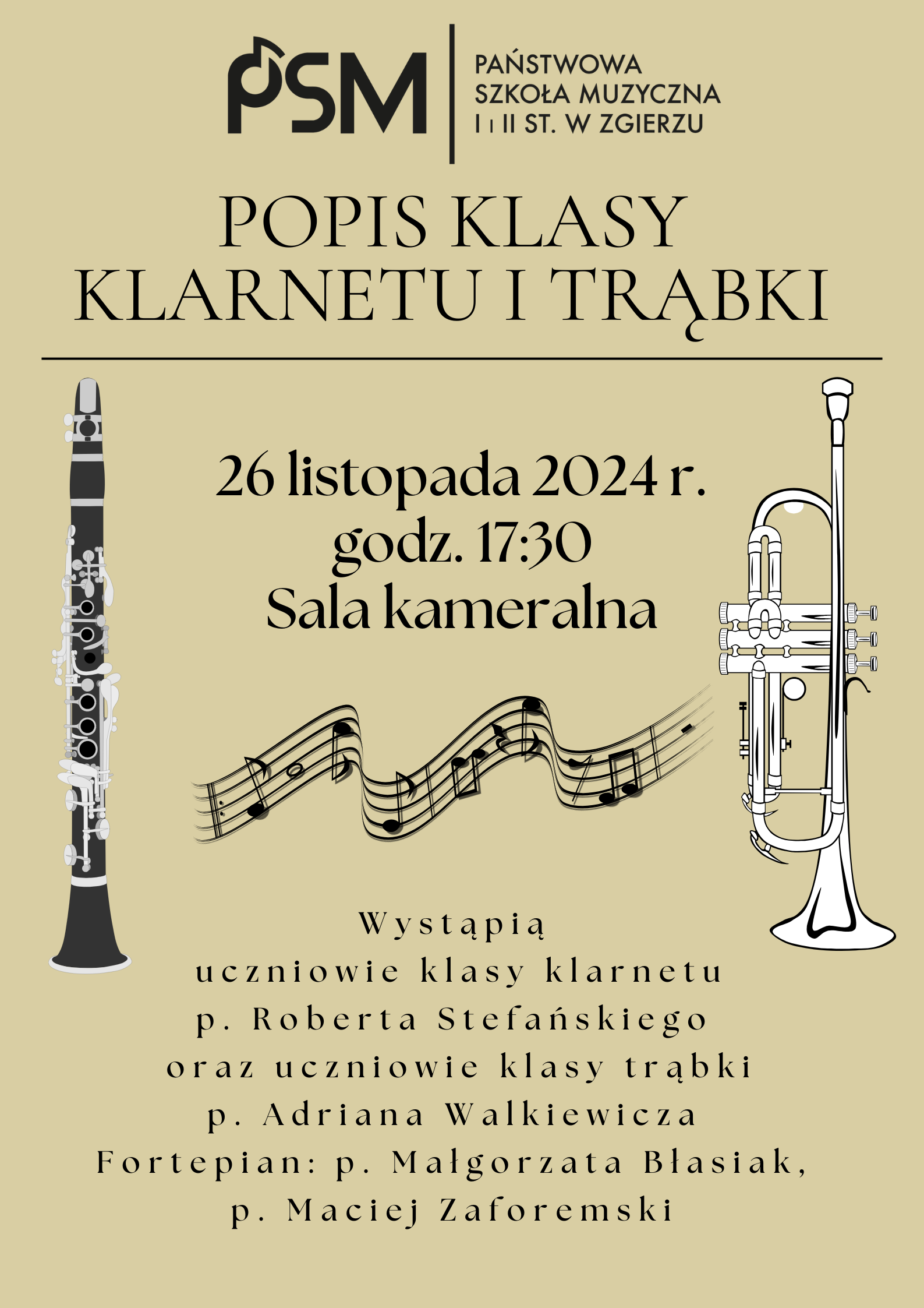 Zapraszamy na popis klasy klarnetu i trąbki.