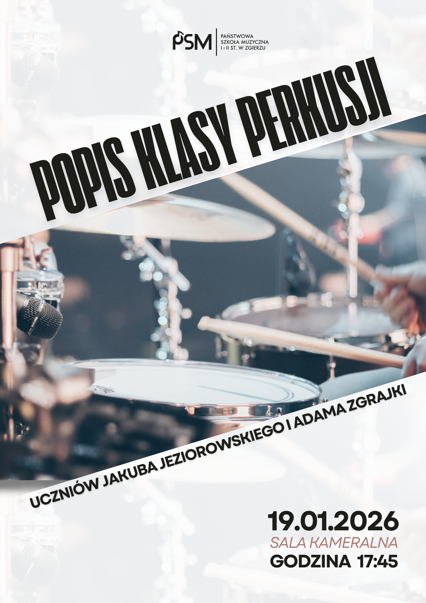 Popis klasy perkusji 17.01.2026 Popis klasy perkusji 19.01.2026, o godzinie 17:45 SALA KAMERALNA Zdjęcia (1) Pokaż zdjęcie 1 z galerii.