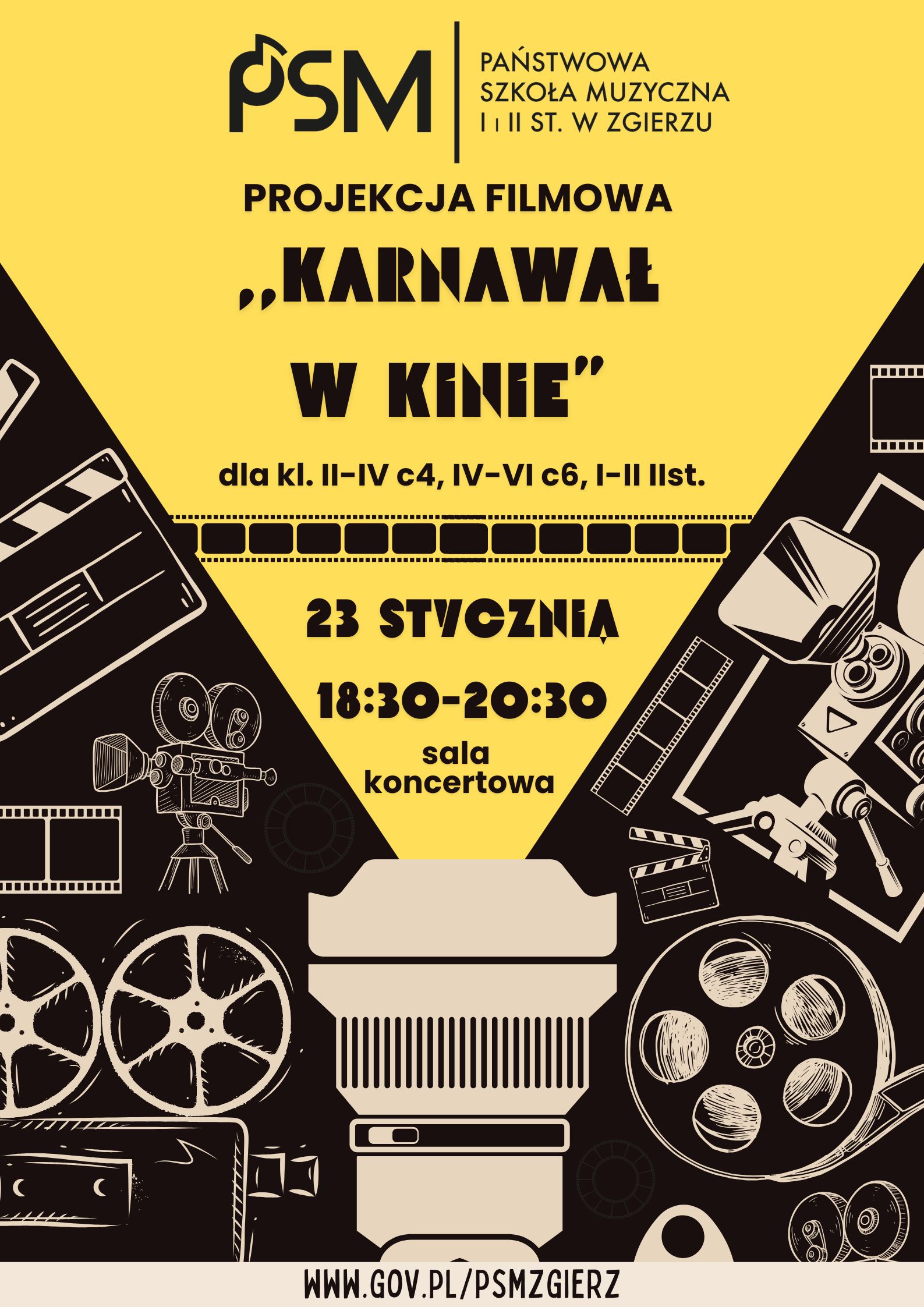 Zapraszamy klasy II-IV c4, IV-VI c6 oraz I-II II st. na "KARNAWAŁ W KINIE"