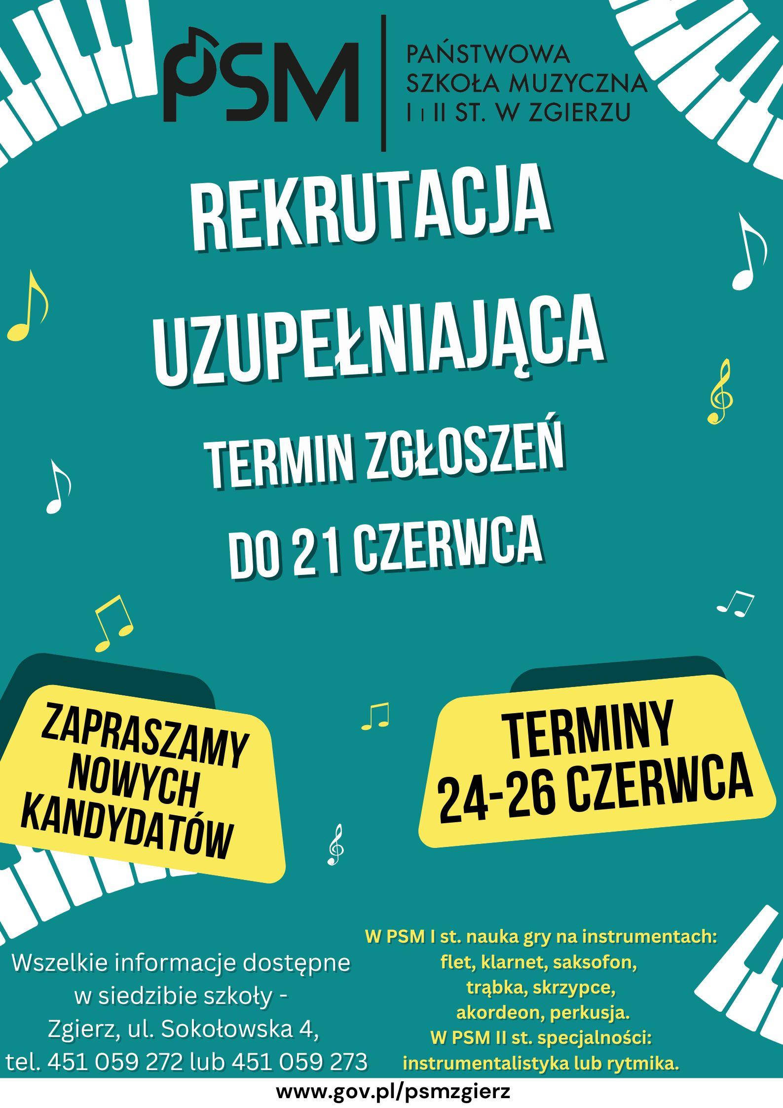 Zapraszamy wszystkich chętnych uczniów do wzięcia udziału w rekrutacji uzupełniającej do Państwowej Szkoły Muzycznej I i II stopnia w Zgierzu.