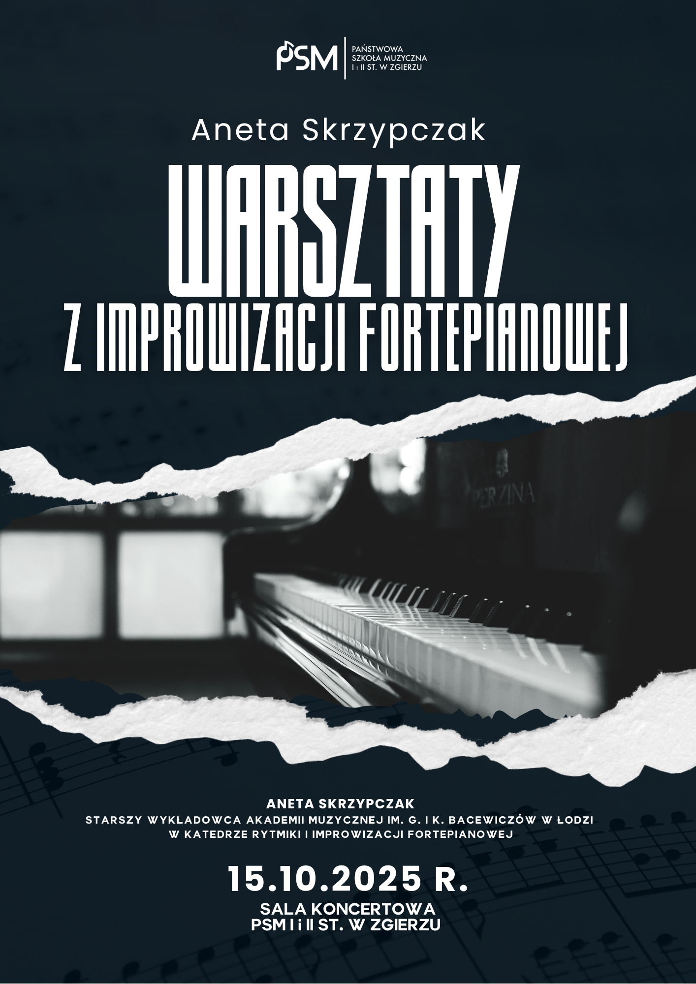 Aneta Skrzypczak - starszy wykładowca Akademii Muzycznej im. G. i K. Bacewiczów w Łodzi w Katedrze Rytmiki i Improwizacji Fortepianowej.