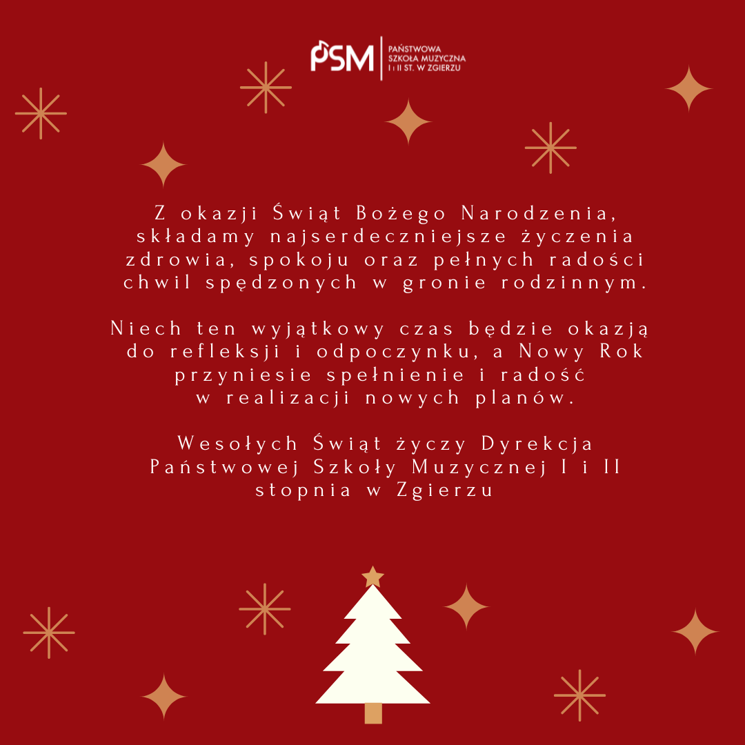 Wesołych Świąt życzy Dyrekcja Państwowej Szkoły Muzycznej I i II stopnia w Zgierzu.
