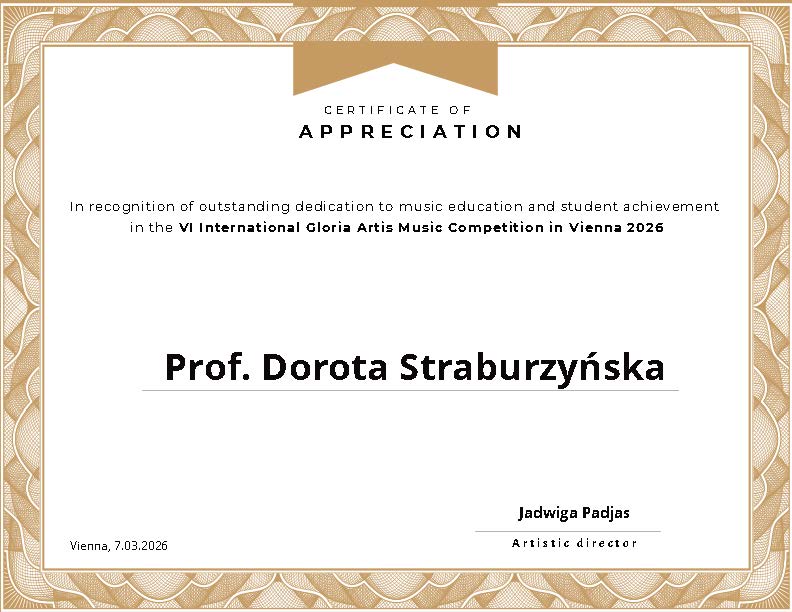 Tegoroczna edycja konkursu muzycznego „Gloria Artis” po raz kolejny zgromadziła utalentowanych młodych wykonawców z całego świata, stwarzając im możliwość zaprezentowania swoich umiejętności przed profesjonalnym jury: Prof. Patricia Shih, Prof. Zdzisław Łapiński, Prof. Andrzej Ślązak, Prof. Miroslav Hanaček, Prof. Martin Opona. Wydarzenie to cieszy się rosnącym prestiżem i stanowi ważny punkt w kalendarzu konkursów artystycznych dla uczniów szkół muzycznych.