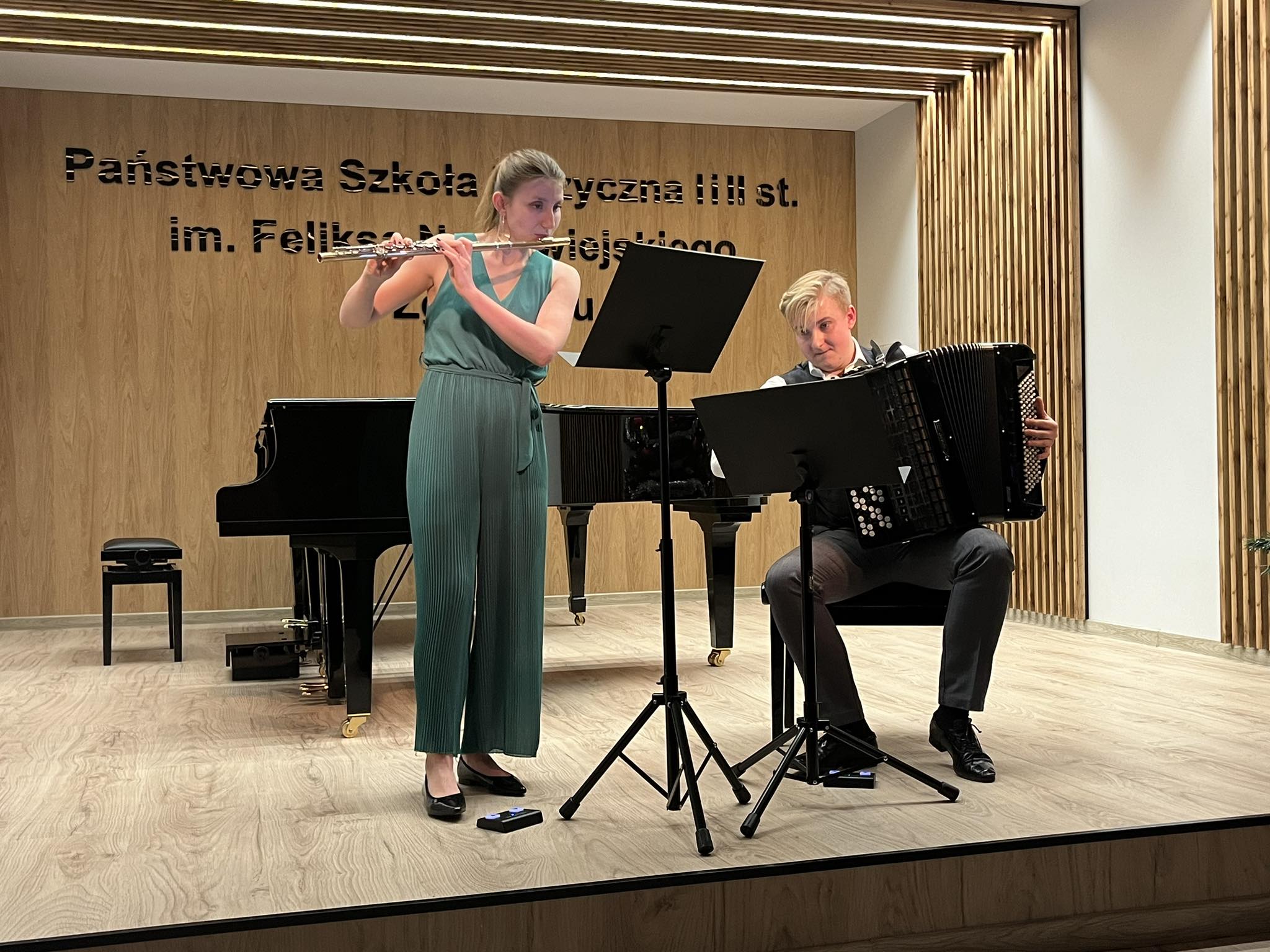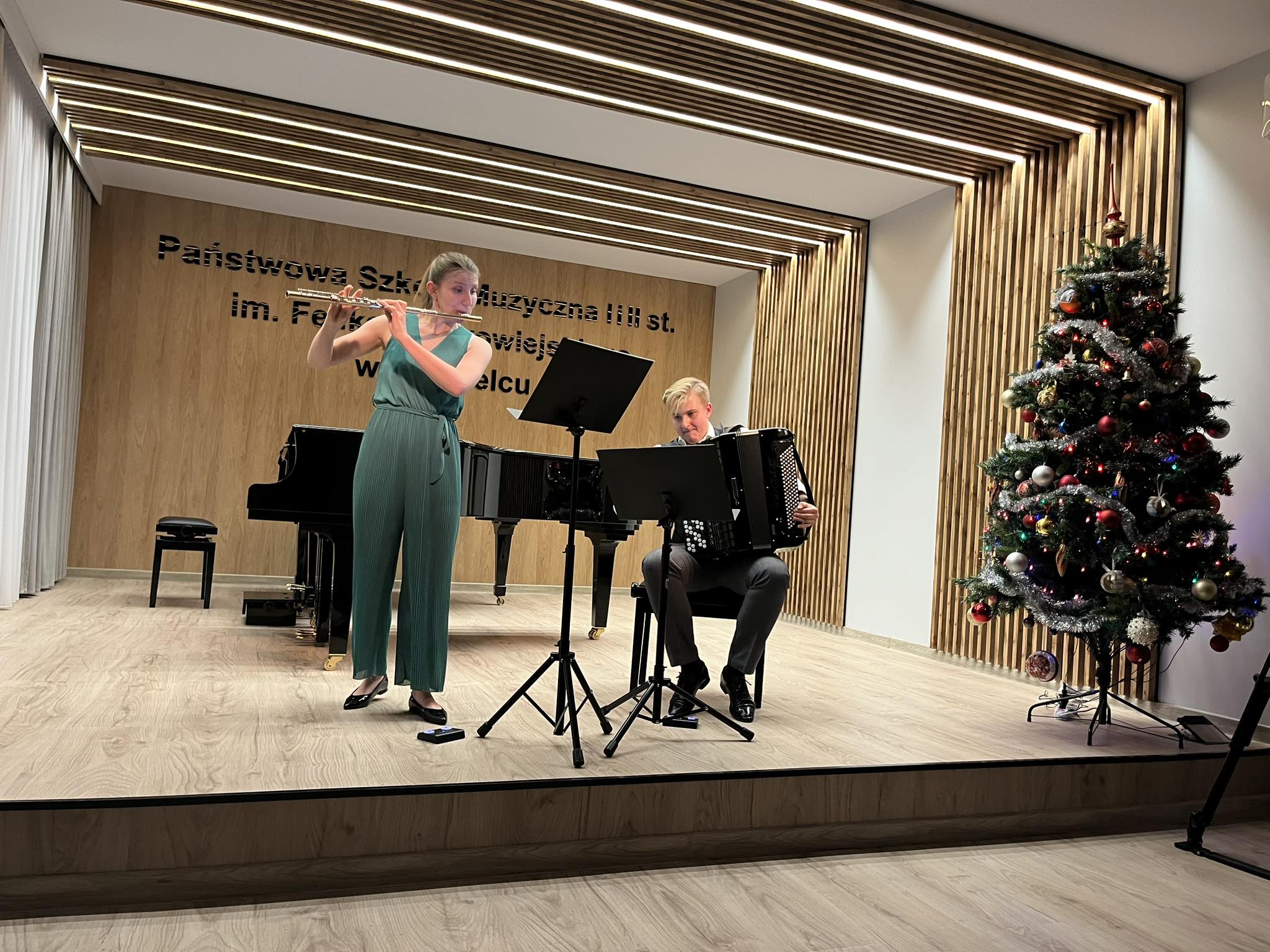 W piątkowe popołudnie (15.12) w auli koncertowej zgorzeleckiej szkoły muzycznej odbył się koncert kameralny „Taniec nie jedno imię ma” w wykonaniu duetu Nexum Duo w składzie: Jagoda Krzemińska-Chałupka – flet oraz Przemysław Chałupka – akordeon.