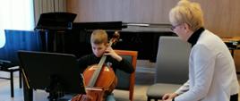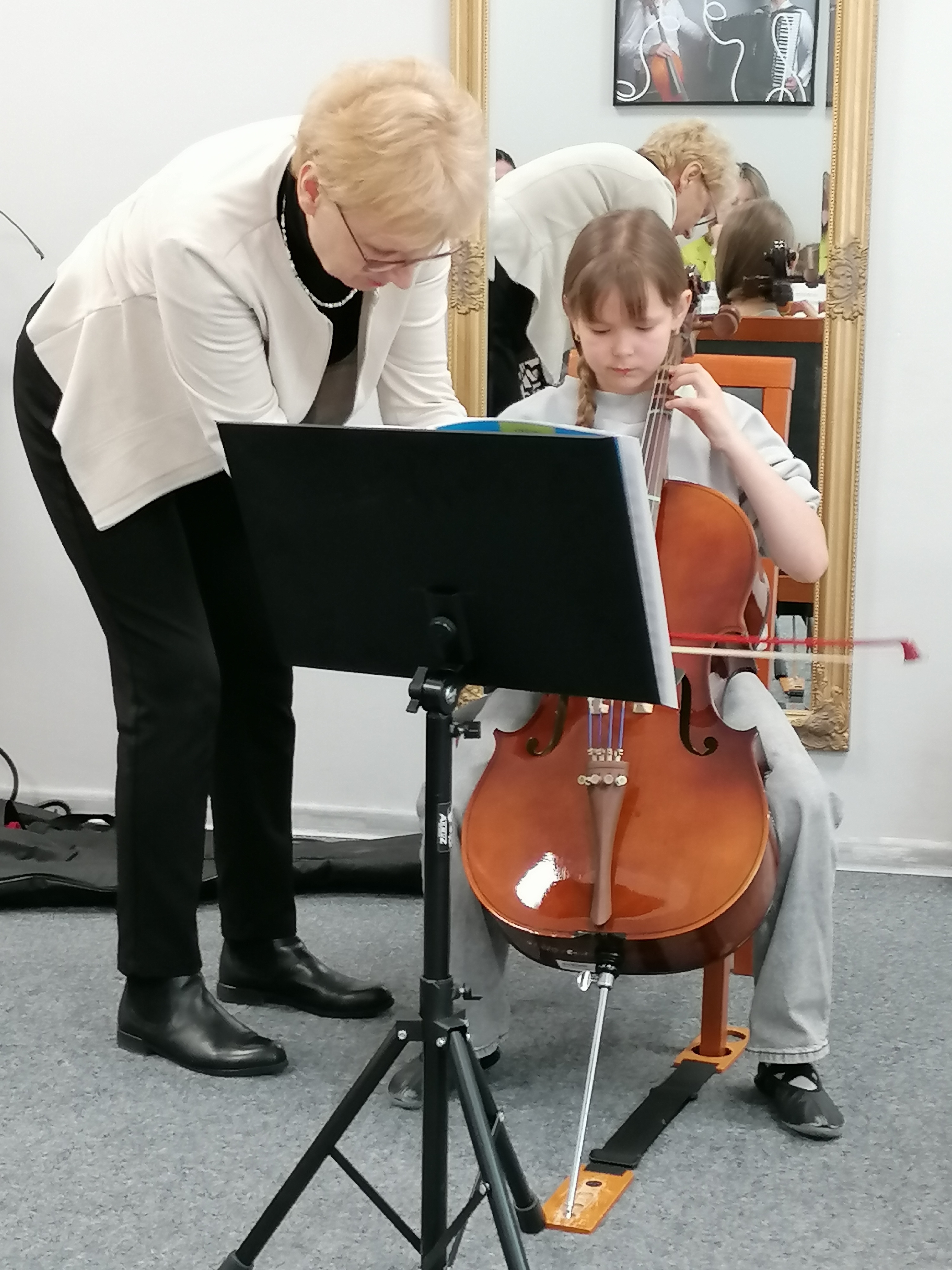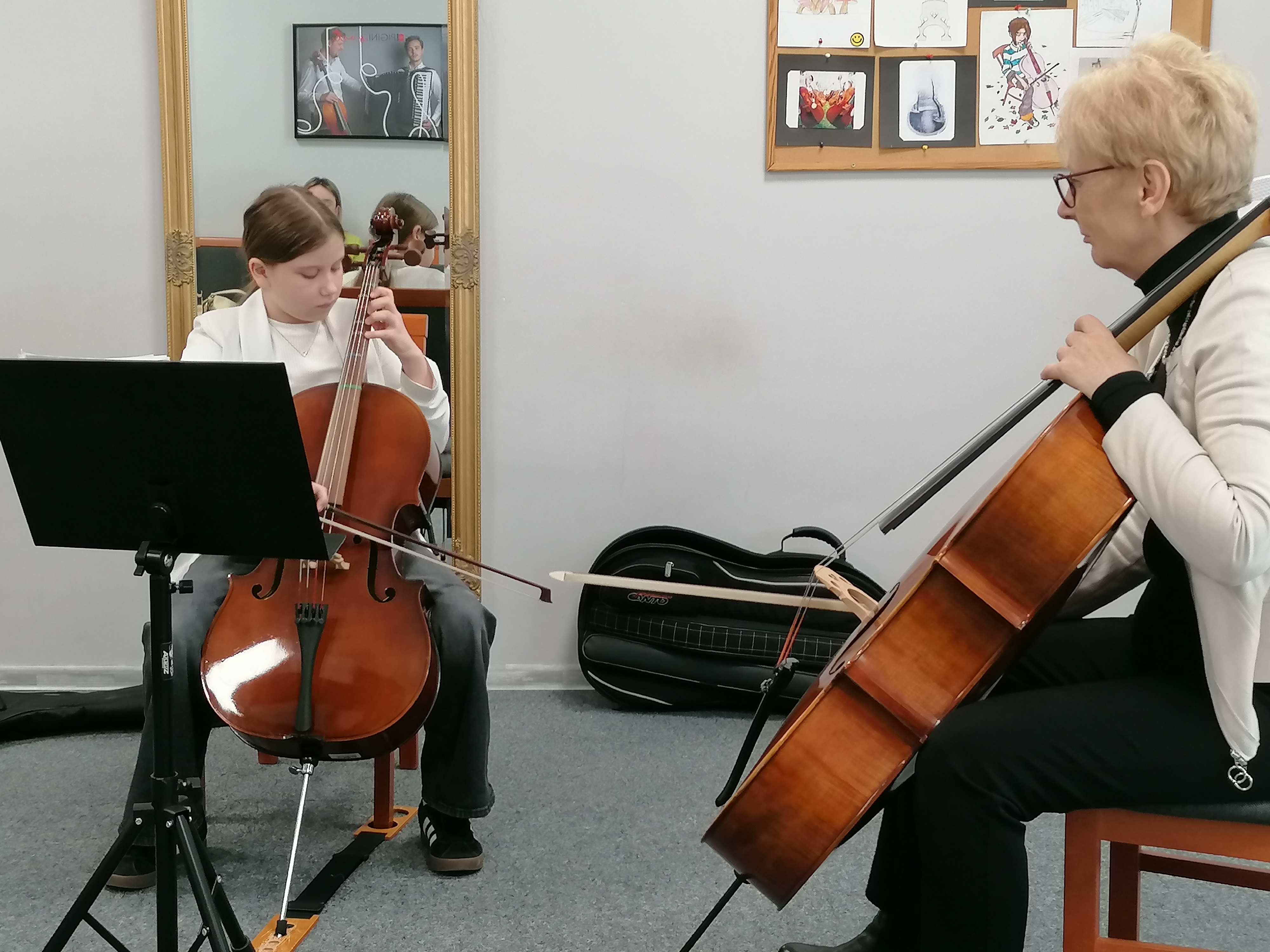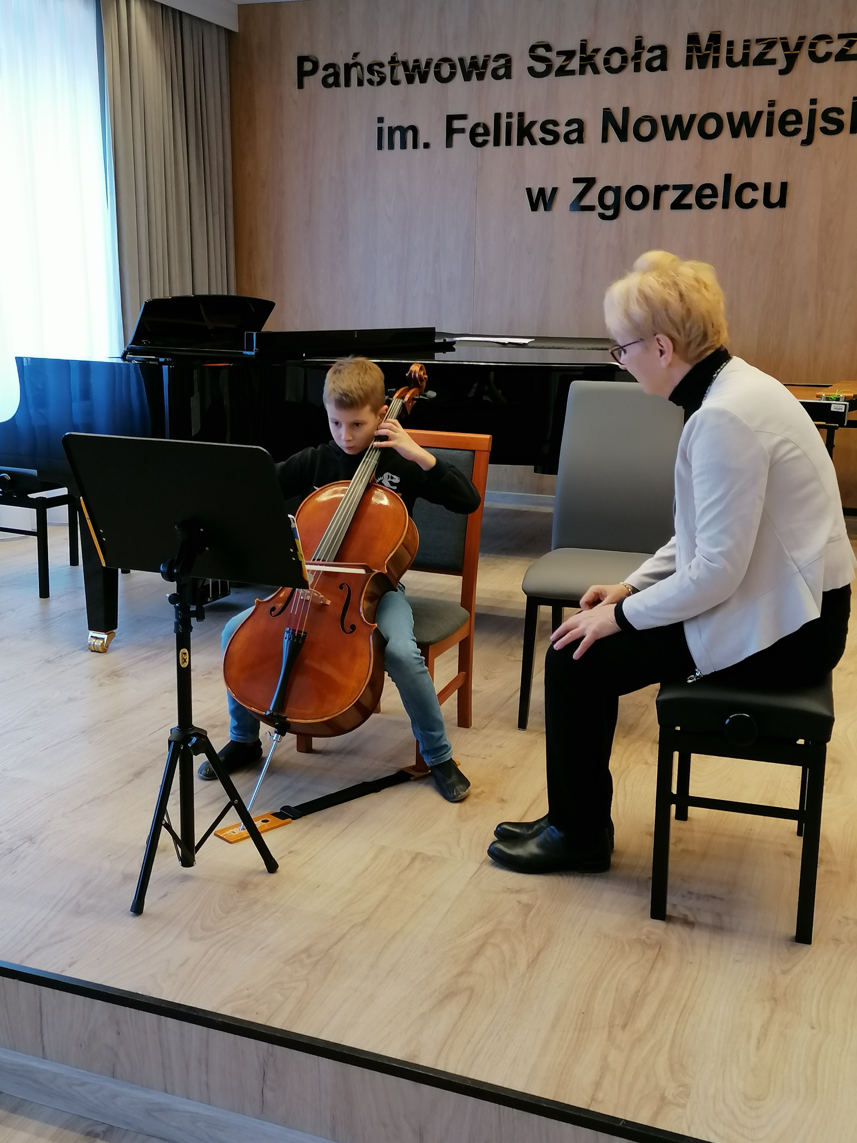 W dniu 28 marca 2025 r. gościliśmy w naszej szkole panią prof. dr hab. Lidię Grzankę-Urbaniak z Akademii Muzycznej im. K. Lipińskiego we Wrocławiu, która poprowadziła warsztaty wiolonczelowe z uczniami pani Doroty Straburzyńskiej.