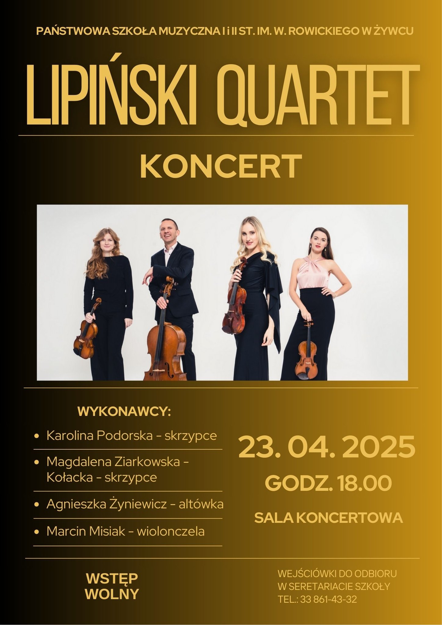Serdecznie zapraszamy 23 kwietnia na koncert znakomitego zespołu kameralnego LIPIŃSKI QUARTET